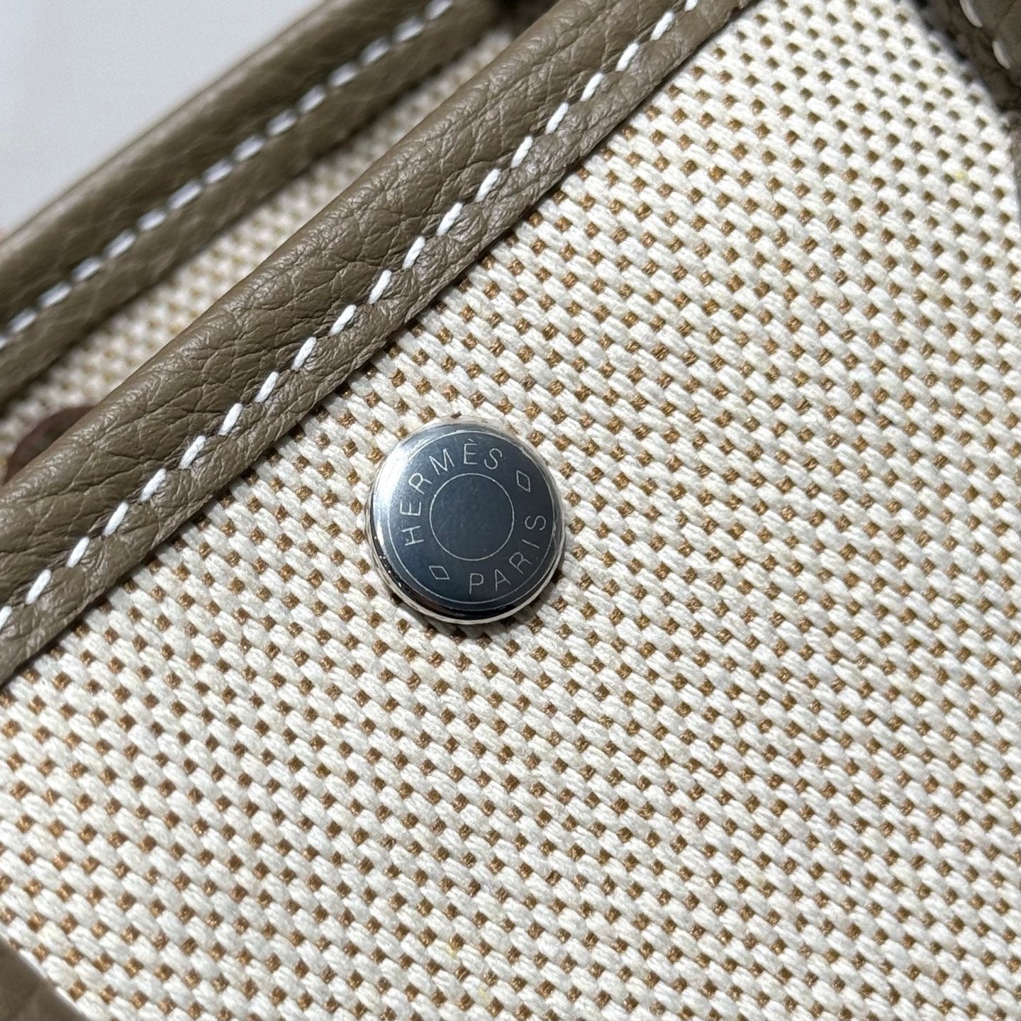 HM Garden Party 30cm Bag Vert Amande Togo Beige Canvas