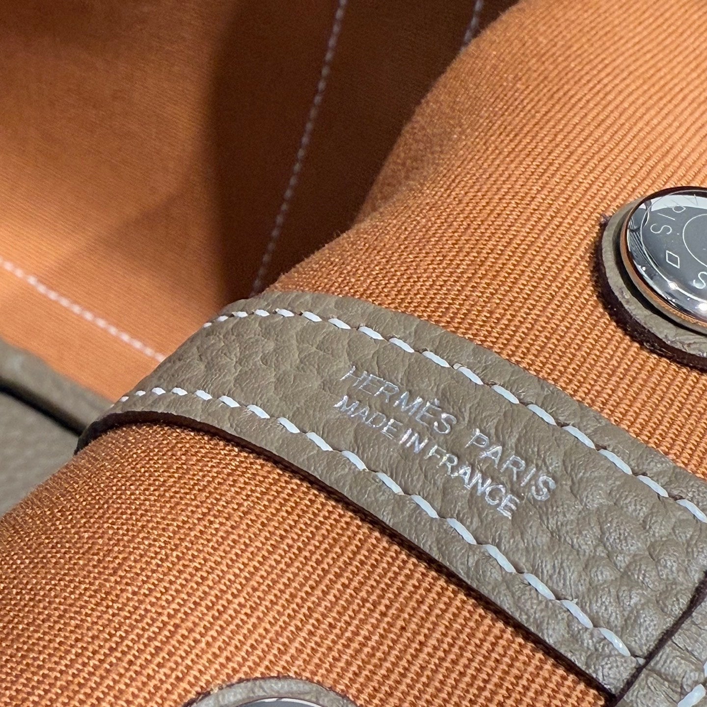 HM Garden Party 30cm Bag Etoupe Togo Orange Canvas