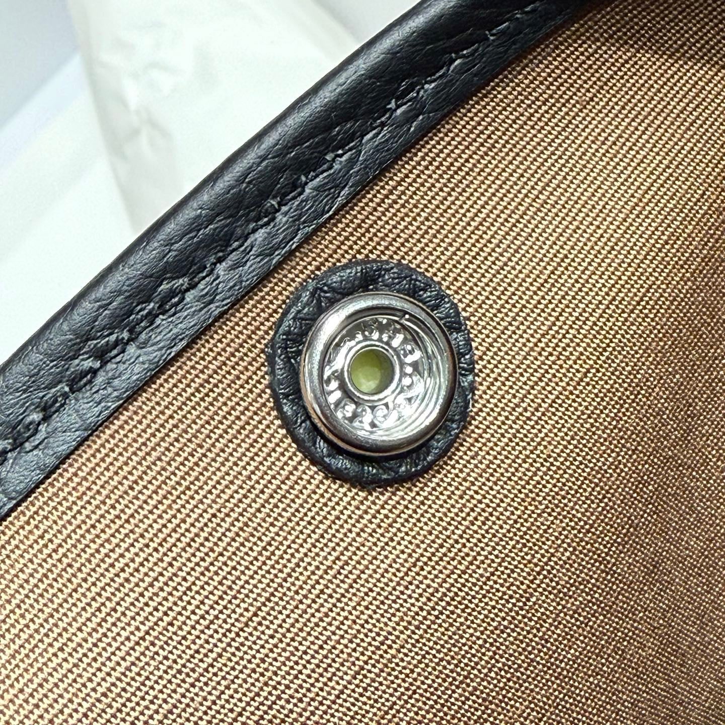 HM Garden Party 30cm Bag Black Togo Brown Canvas