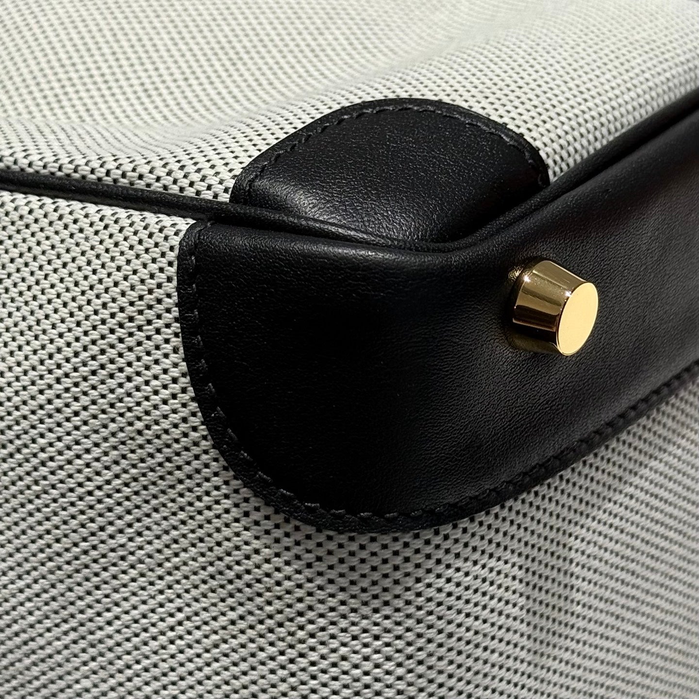 HM Garden Party Mini 23cm Bag Black Togo Cream Canvas
