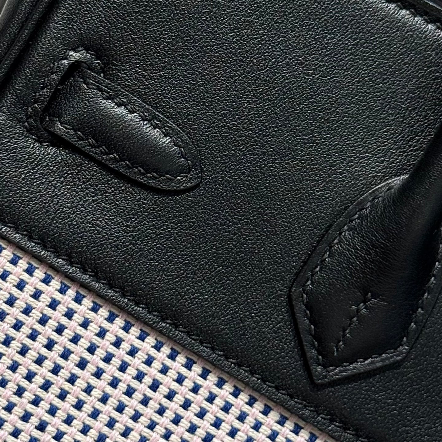 HM Birkin 25cm Black Swift Grey Canvas Silver Hardware