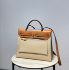 Herbag 31 Toile Light Beige Canvas Gold Cowhide Leather