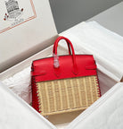 HM BIRKIN 25 CM PICNIC RED BAMBOO AND RATTAN