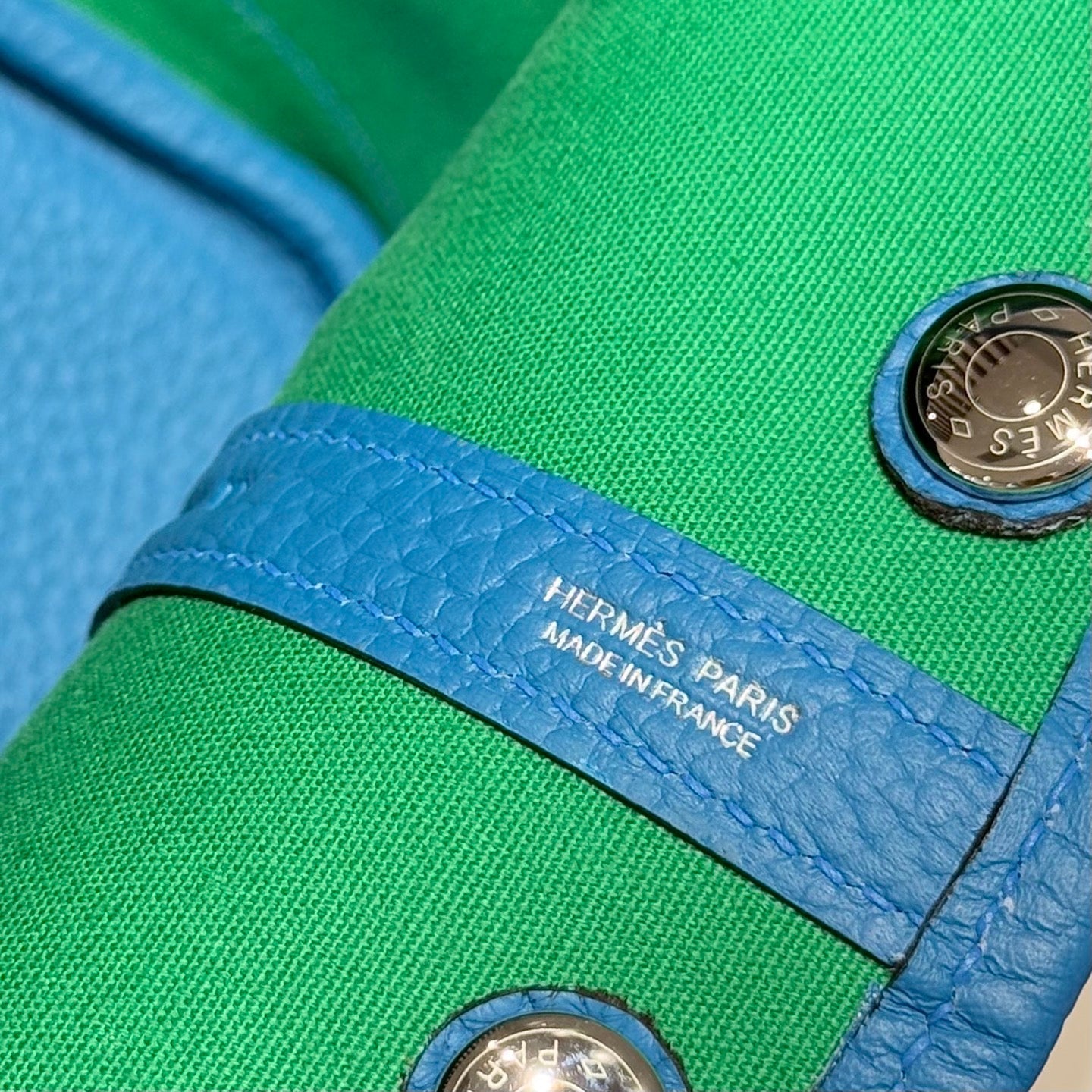 HM Garden Party 30cm Bag Blue Togo Cream Canvas