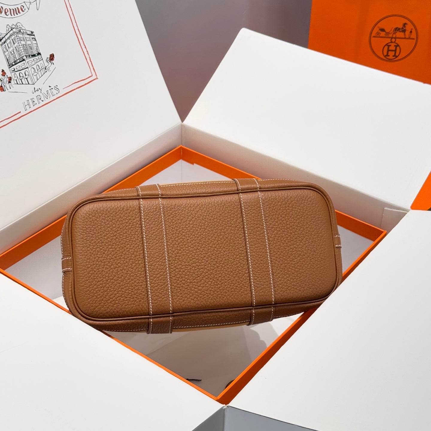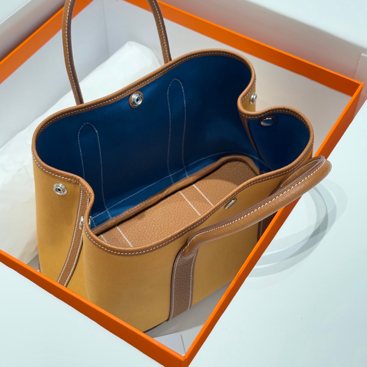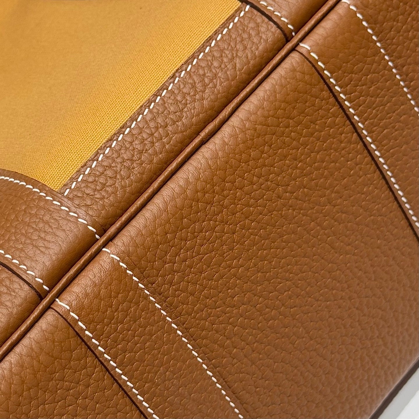 HM Garden Party 30cm Bag Gold Togo Dark Beige Canvas