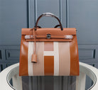 HM HERBAG ZIP 31 CINDER AND CREAM LINE MOTIF CANVAS