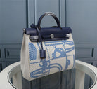 HM HERBAG ZIP 31 NAVY AND CREAM MONOGRAM CANVAS