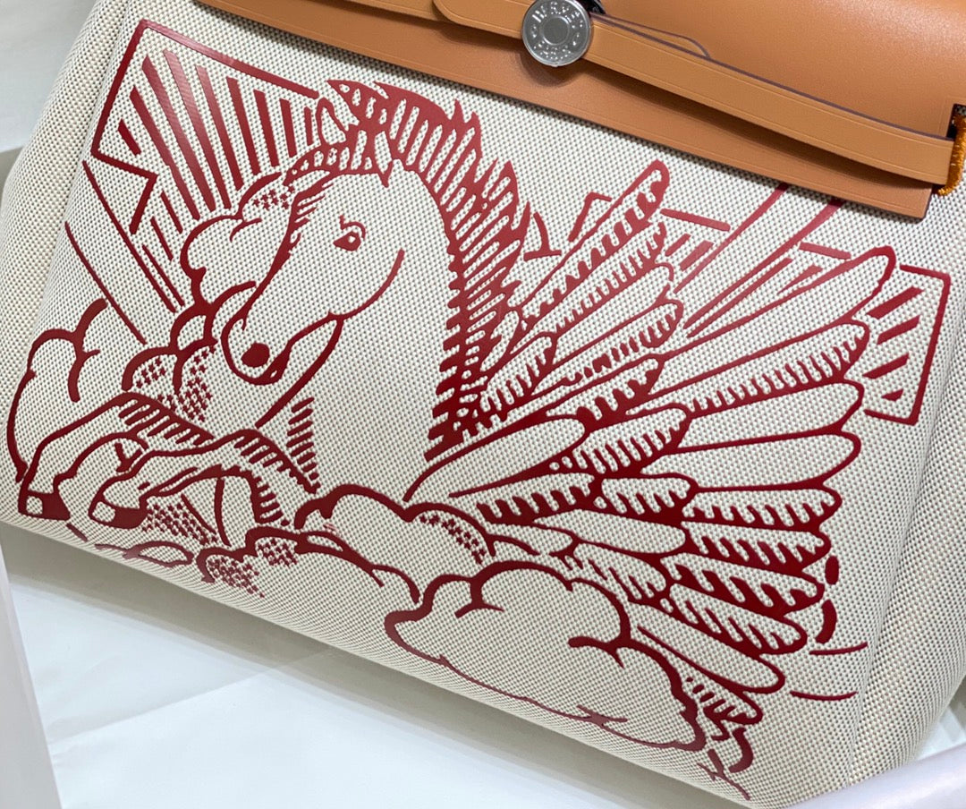 HM Pegase Pop Herbag Zip 31 White Brown Canvas Black Cowhide Leather