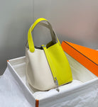 HM PICOTIN LOCK 22 WHITE AND CHARTREUSE TOGO LEATHER