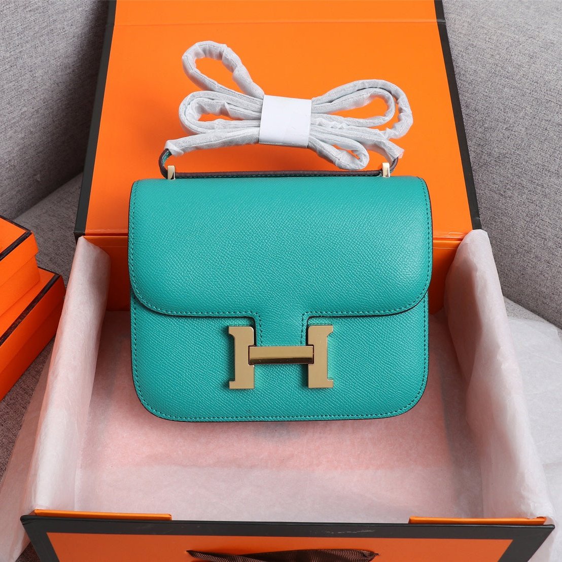 HM CONSTANCE BAG 19 TURQUOISE EPSOM GOLD HARDWARE
