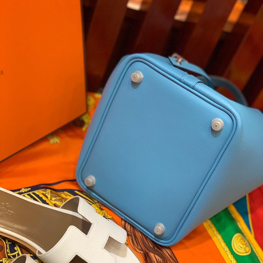 HM PICOTIN LOCK 22 SKY EPSOM LEATHER WITH BRAID STRAP