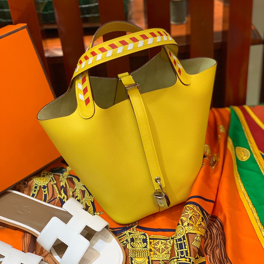 HM PICOTIN LOCK 18 YELLOW EPSOM WITH BRAID STRAP