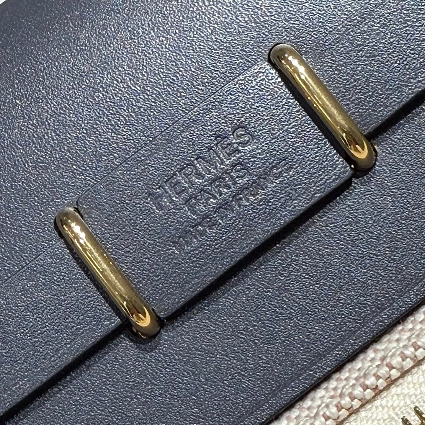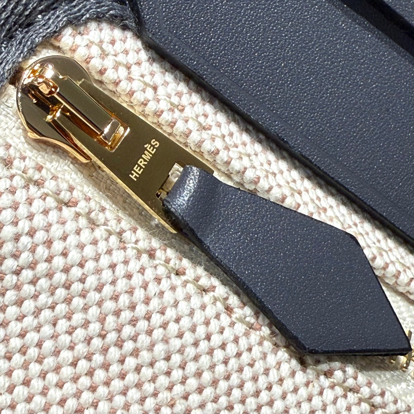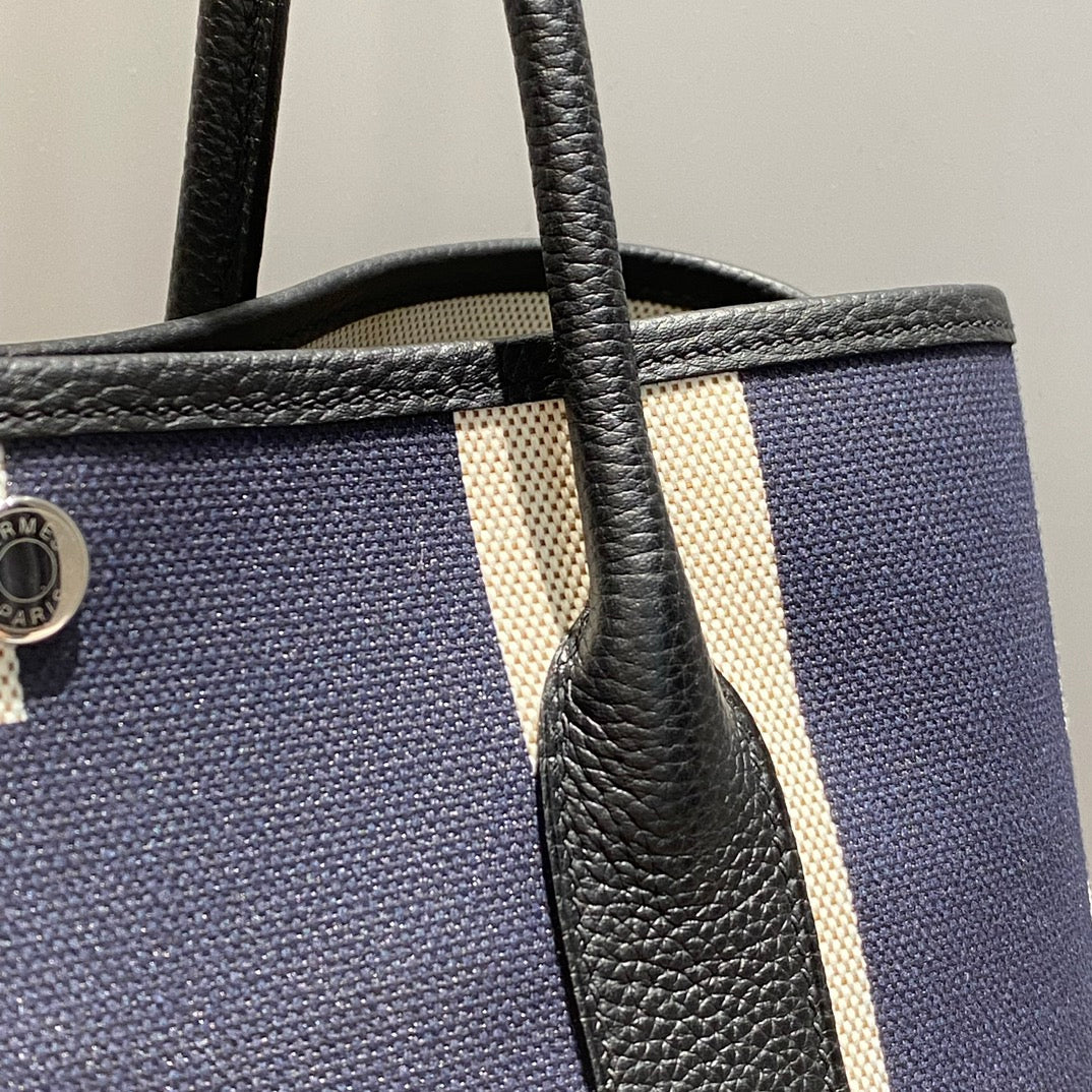 HM Garden Party 36 Beige mix Navy Blue Canvas and Negonda Calfskin 243391