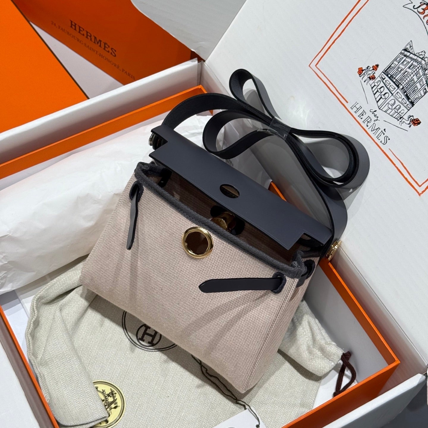 HM Mini Herbag Gold Buckle 20 Beige Grey Canvas and Hunter Cowhide 243285