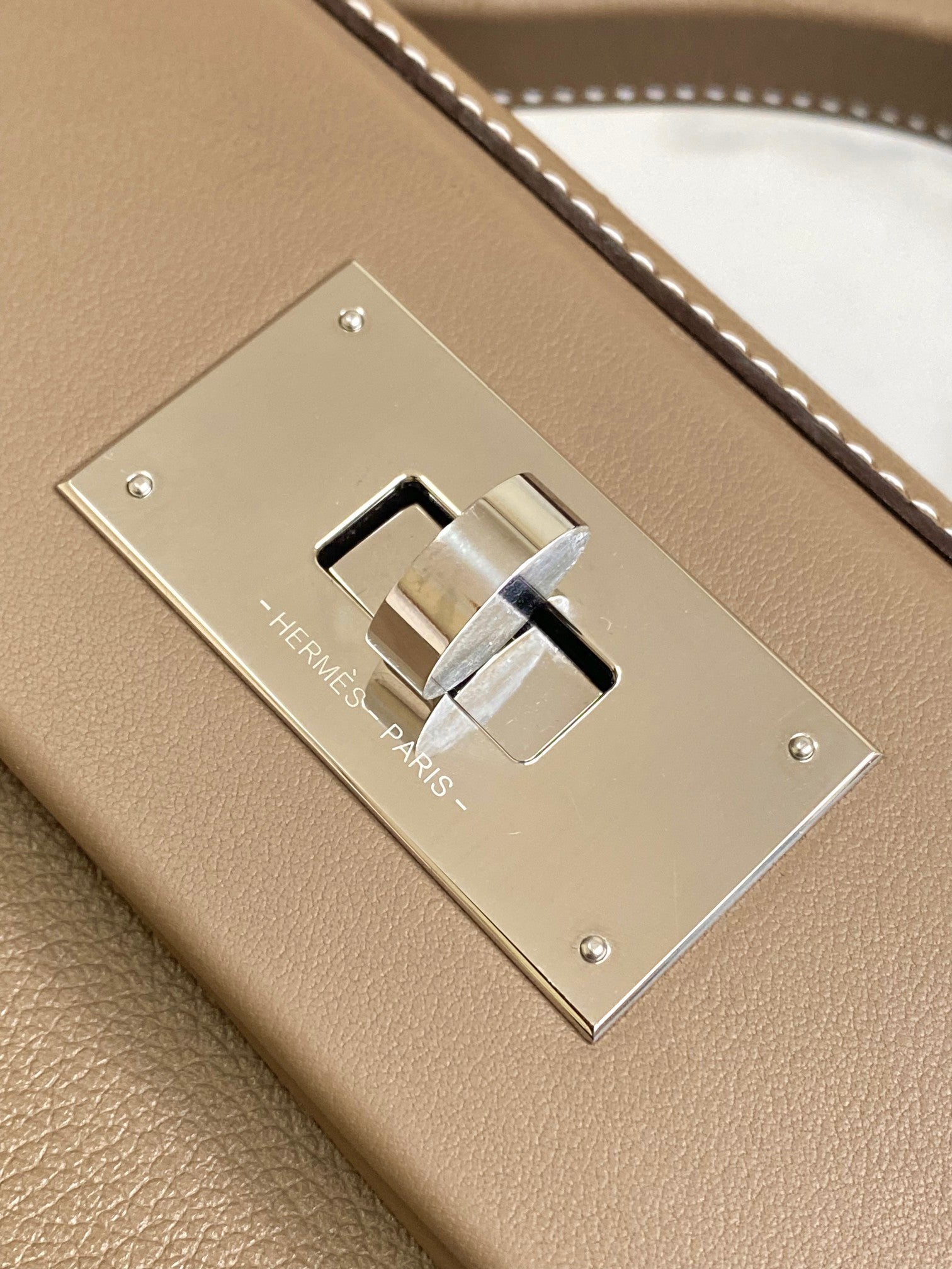 HM Kelly 25cm Etoupe Togo Leather Silver Hardware