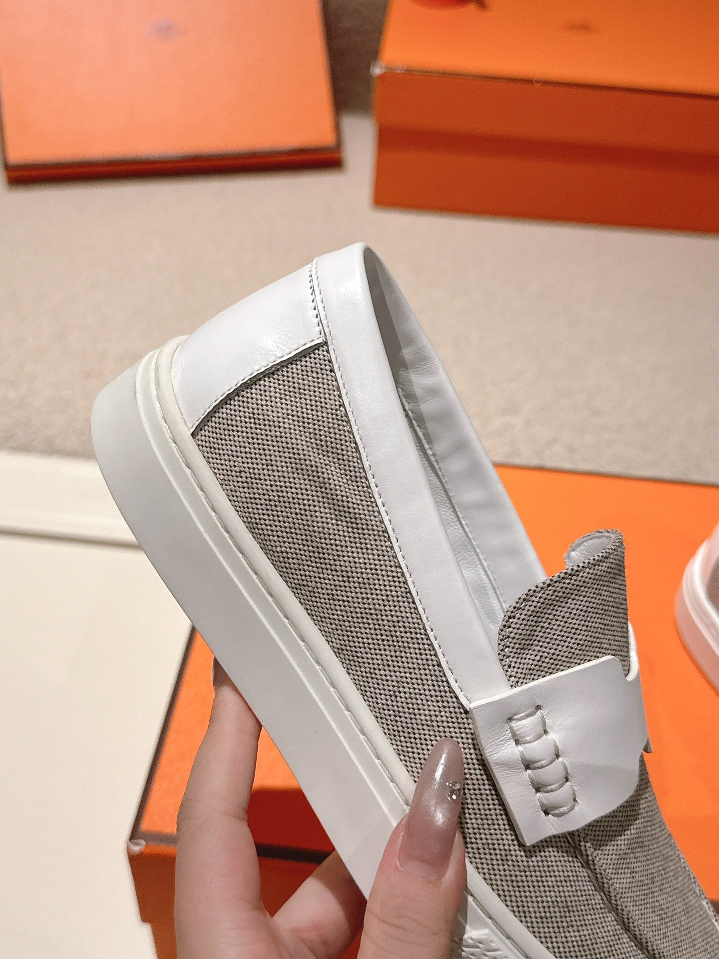 HM 25ss Platform Loafers Gray White Denim Cowhide 577167