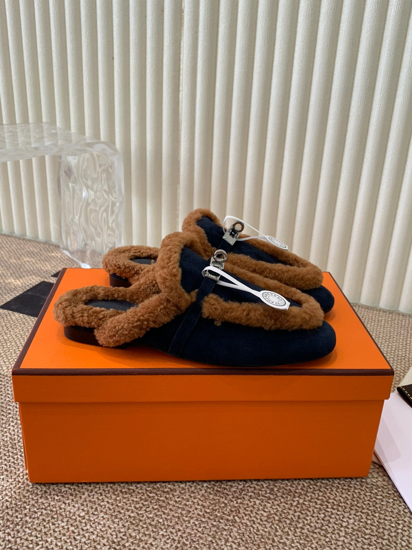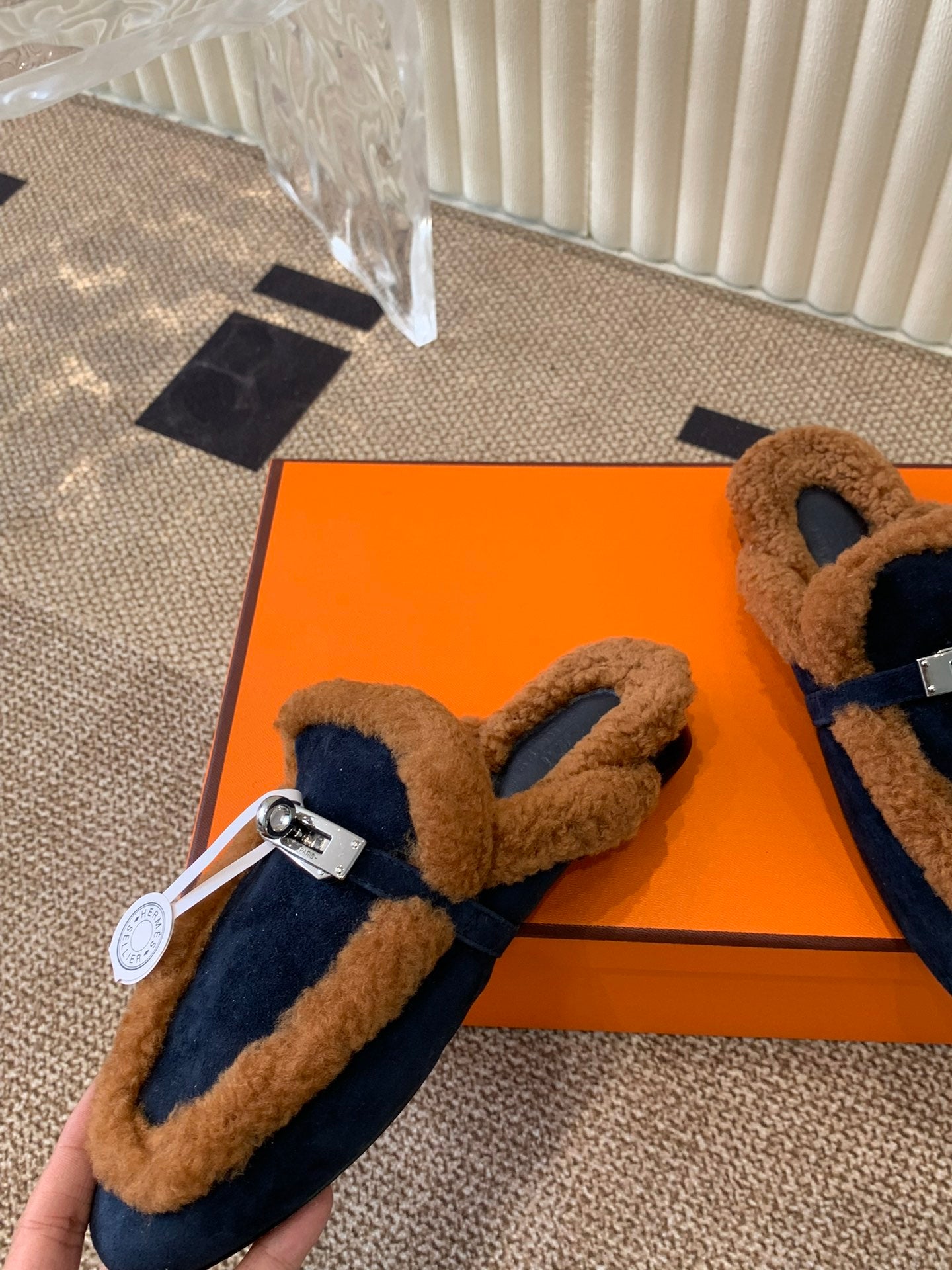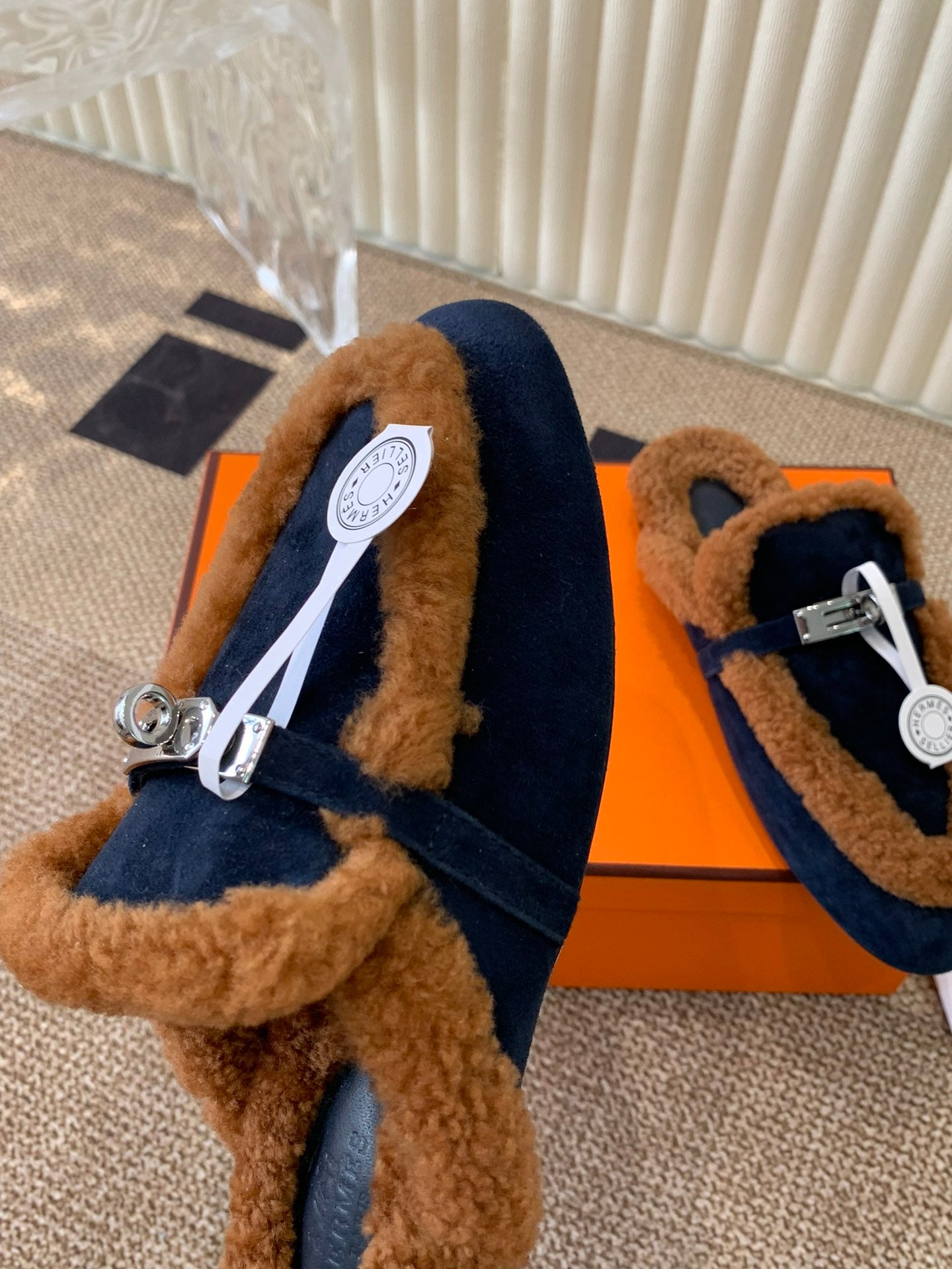 HM Oz Mule In Dark Pastel Blue Suede Lined With Wool Fleece 113199