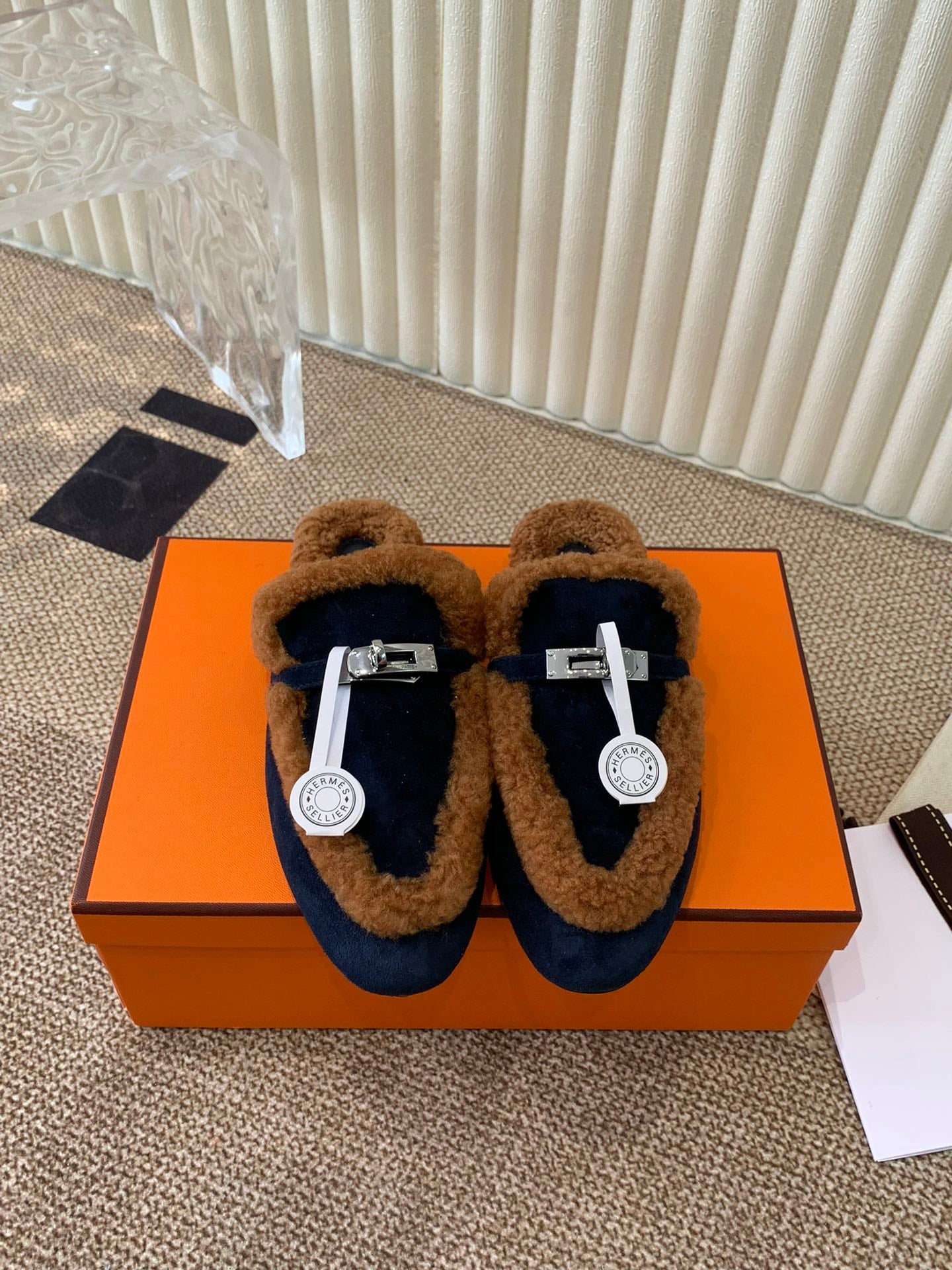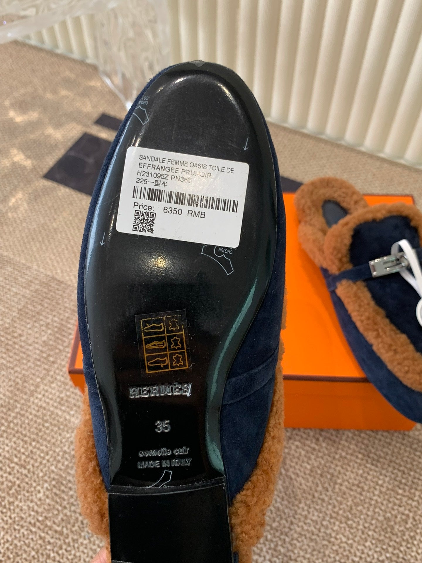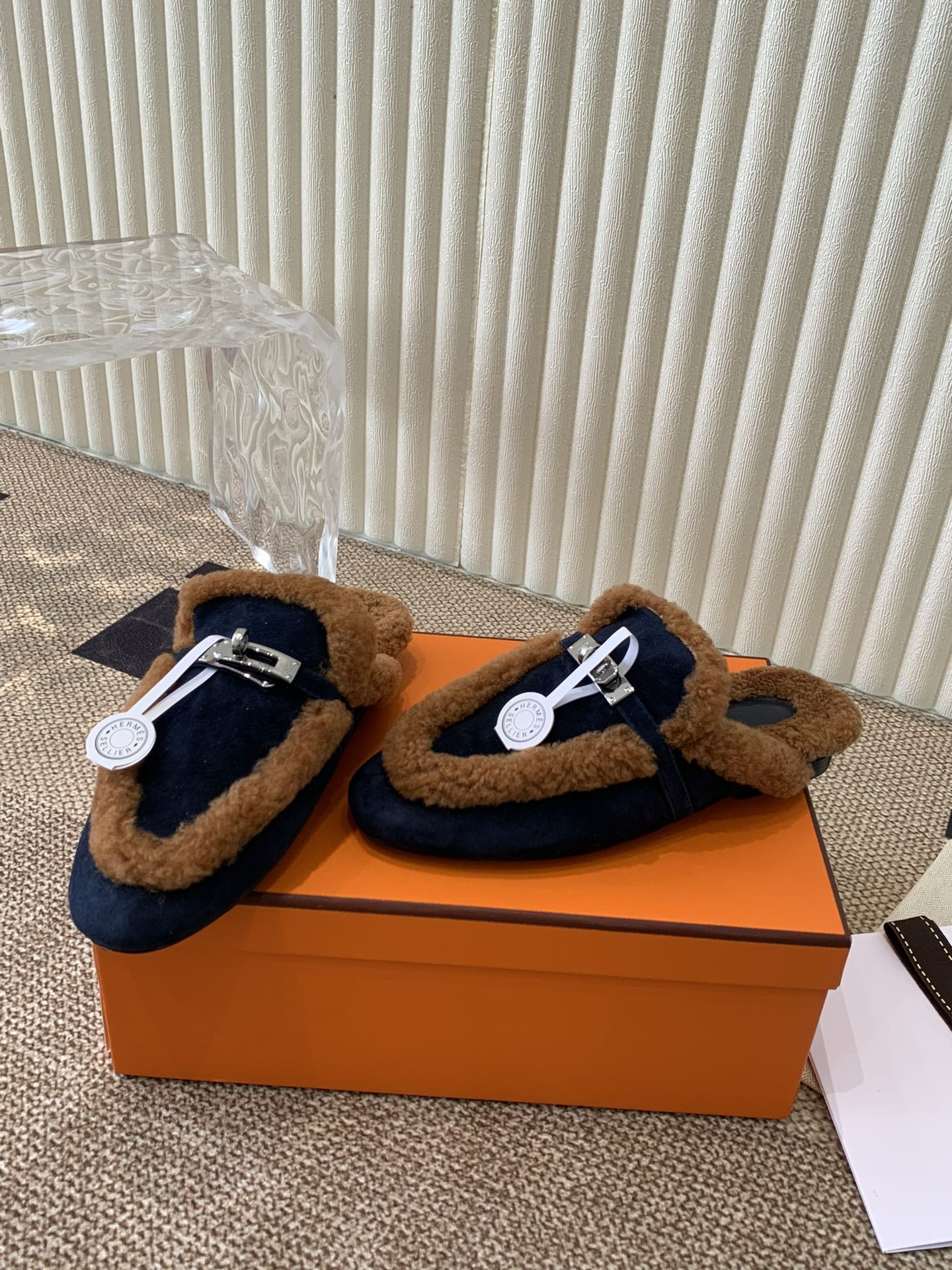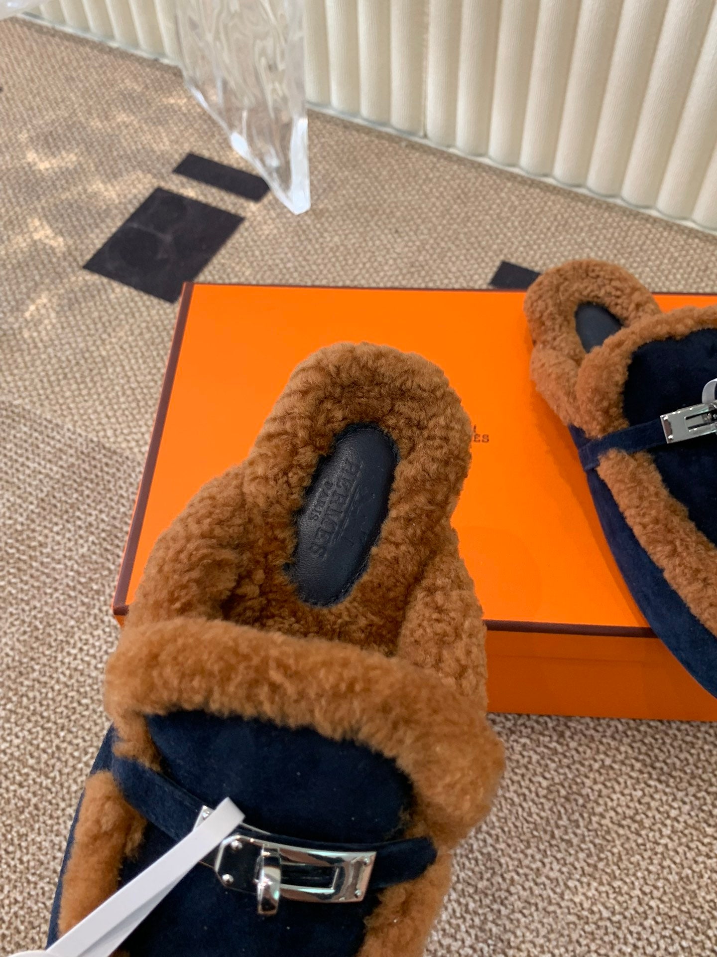HM Oz Mule In Dark Pastel Blue Suede Lined With Wool Fleece 113199