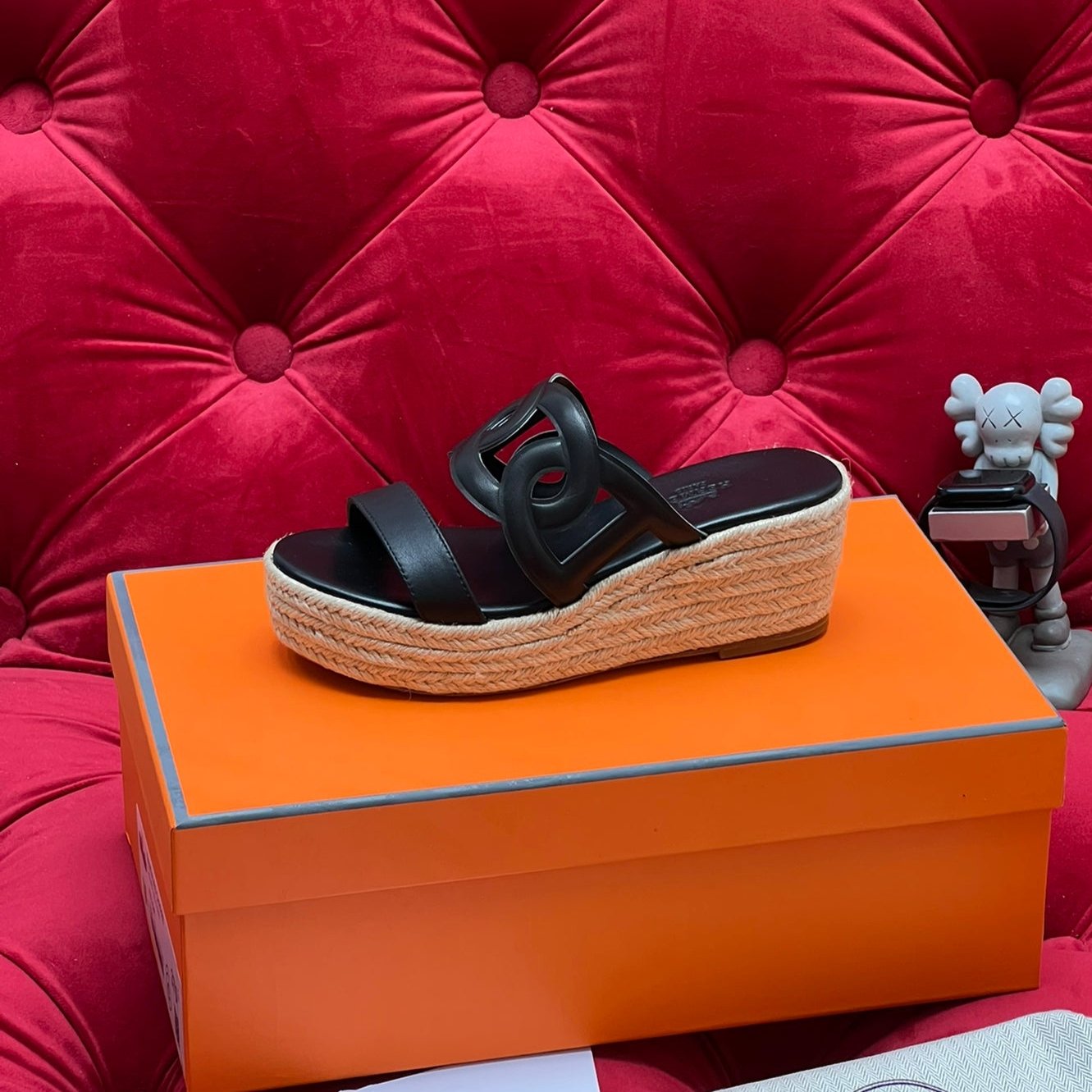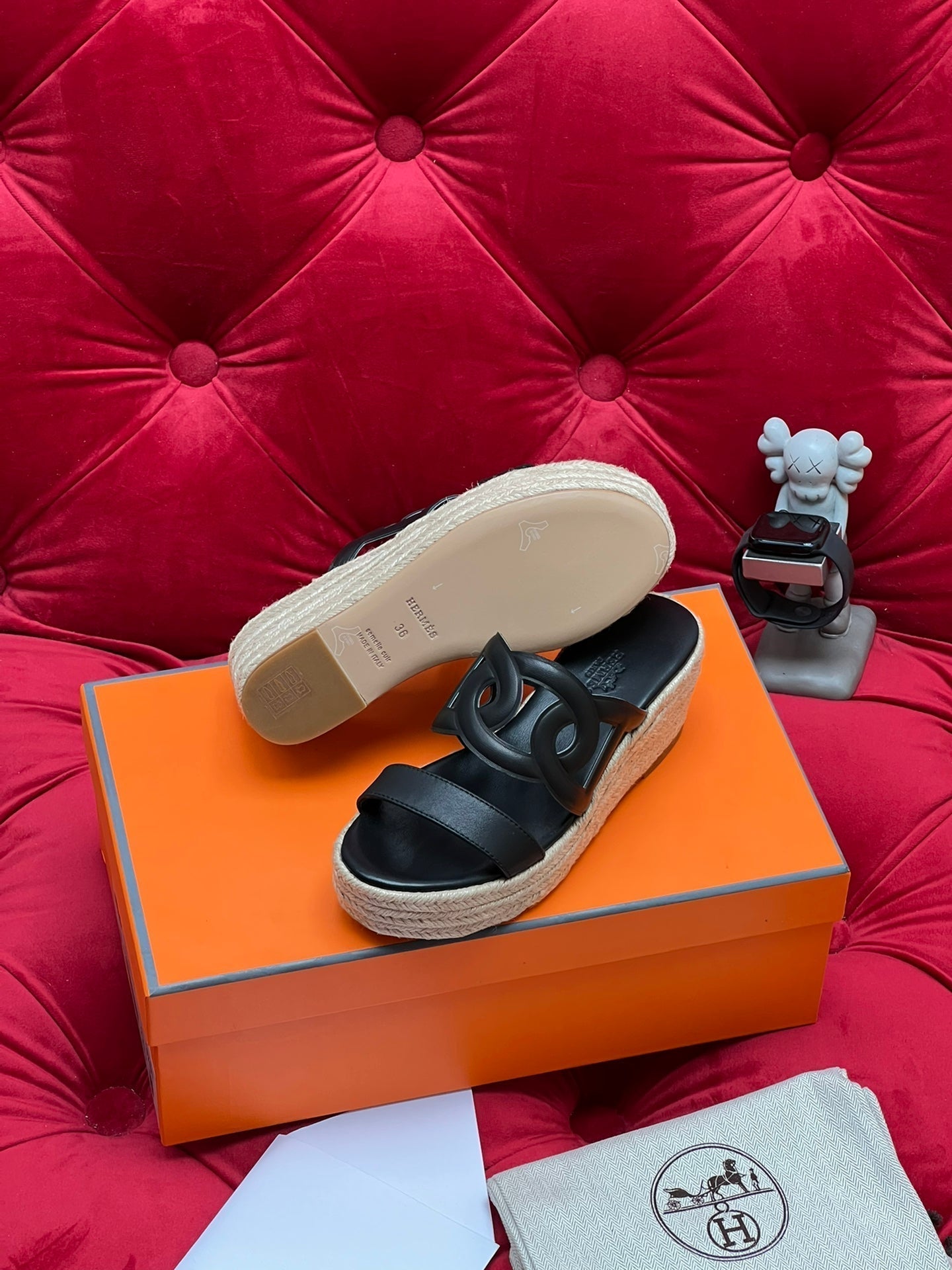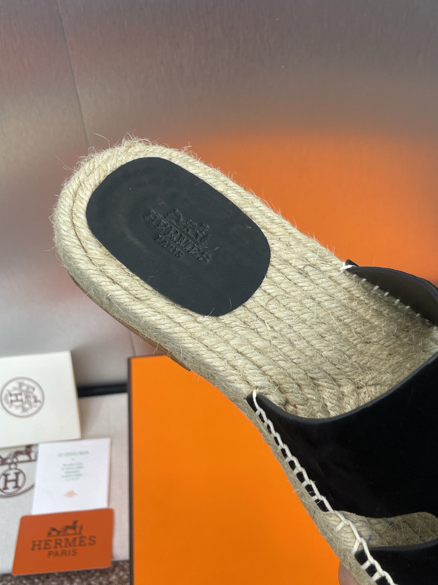 HM Feria Espadrille 20mm Black Calfskin And Handwoven Hemp Rope 967988