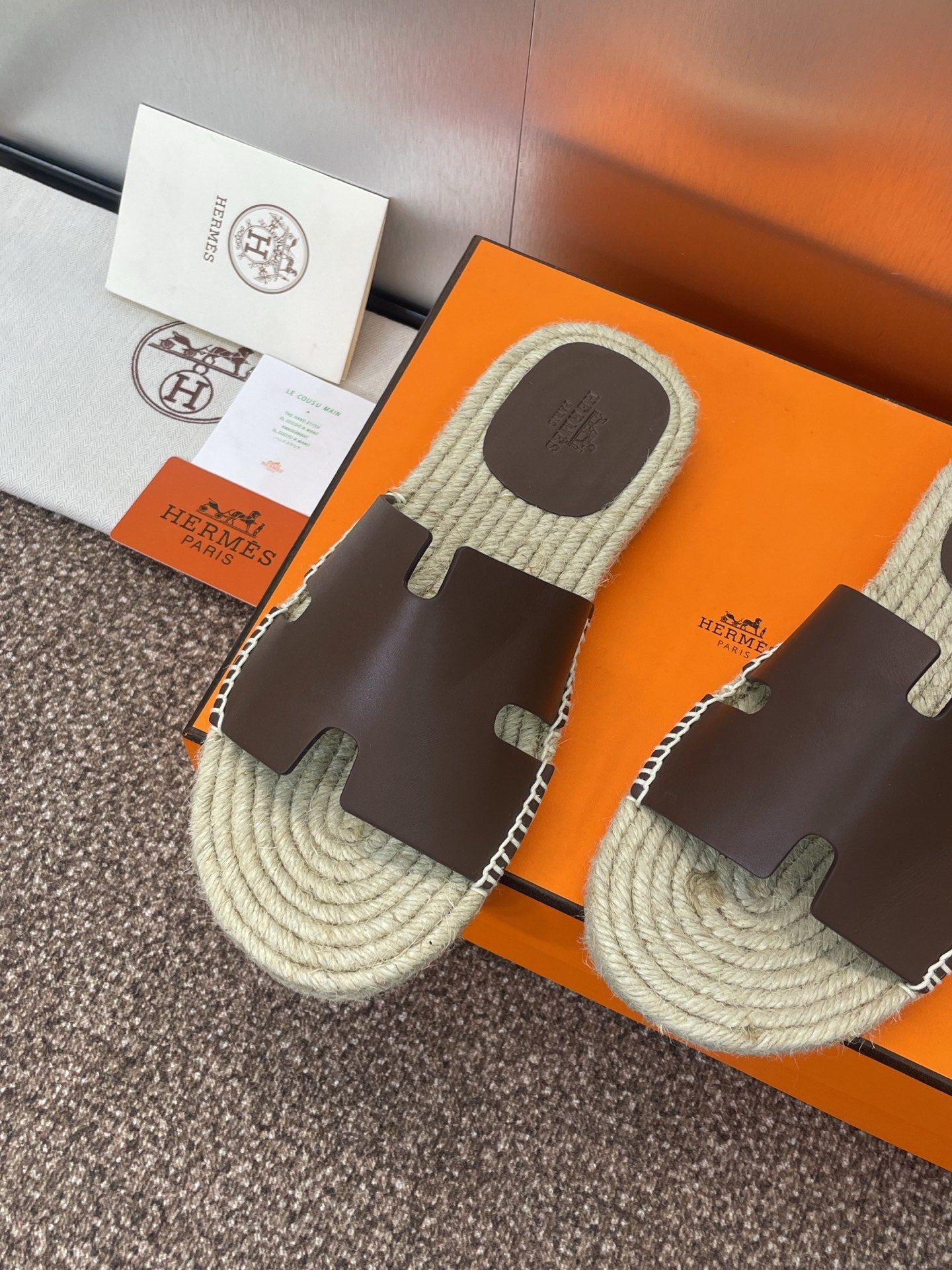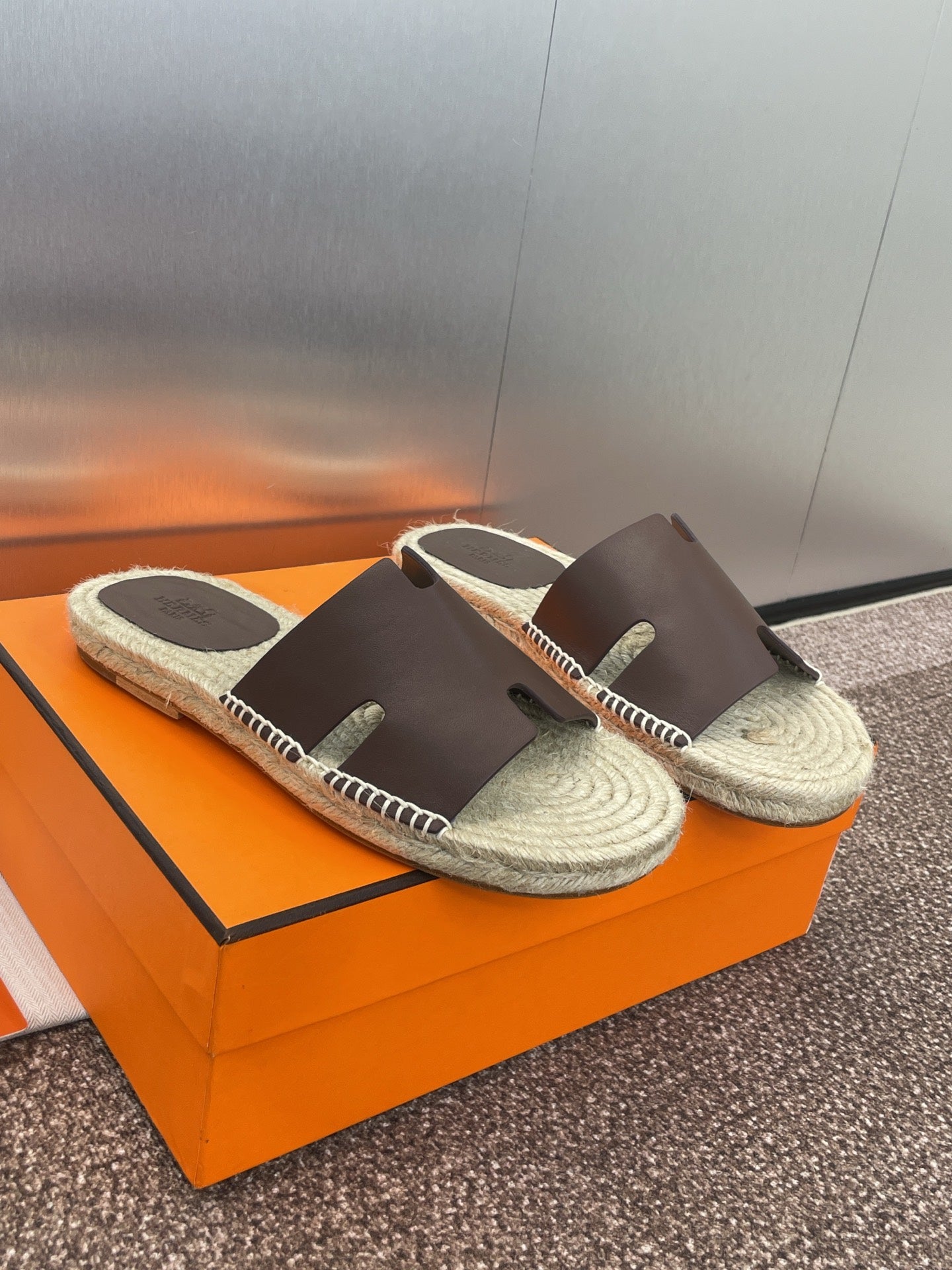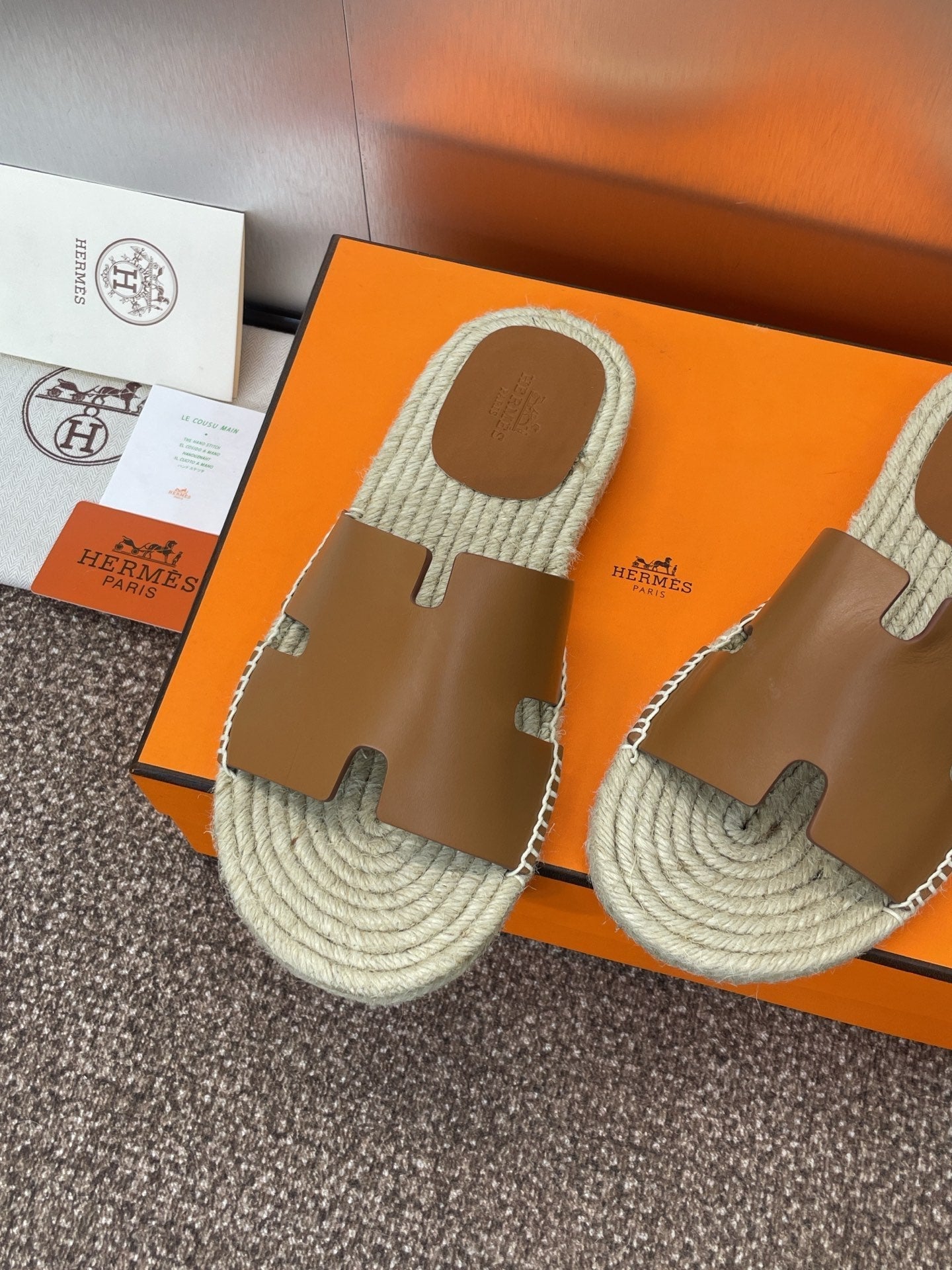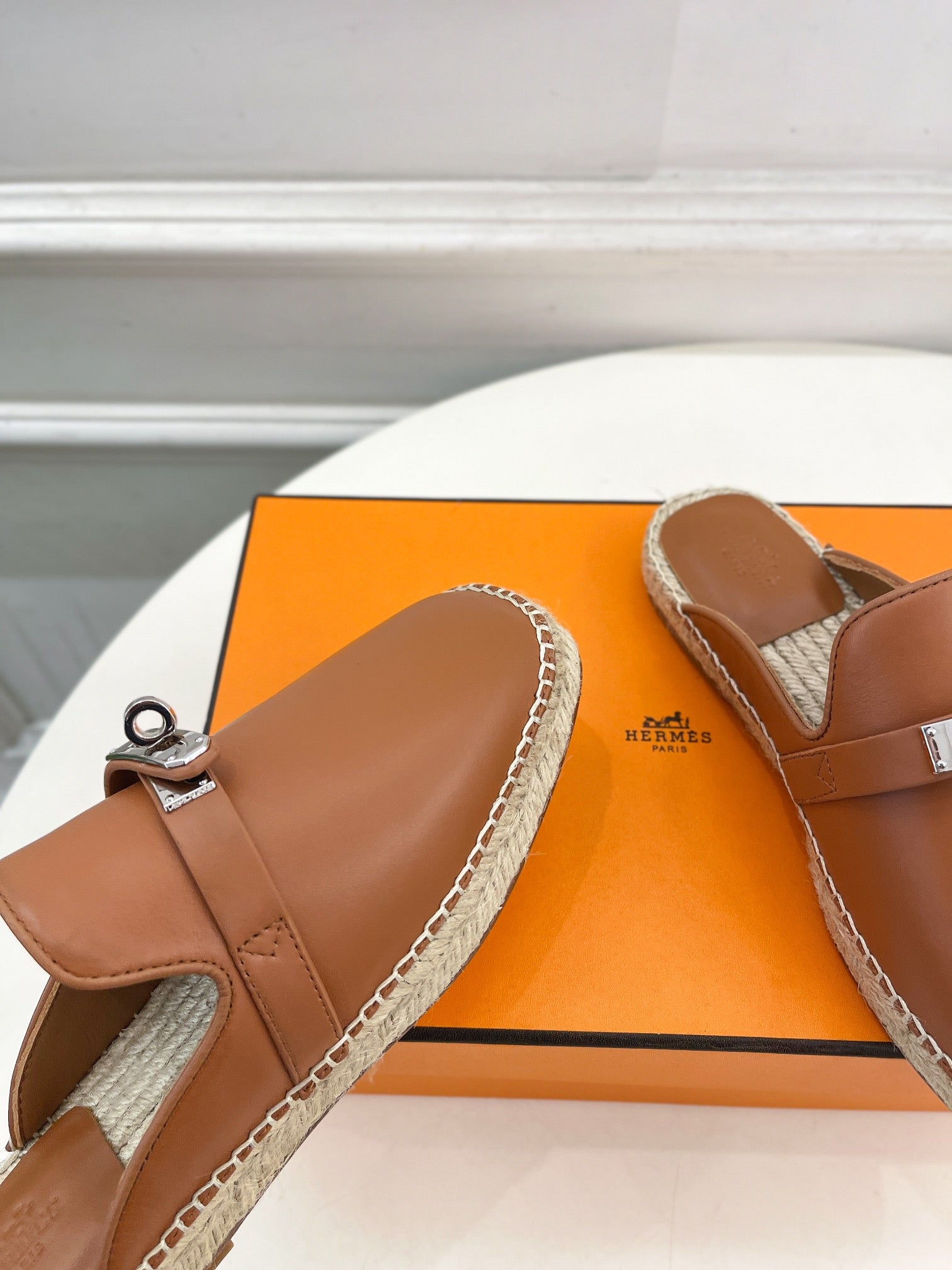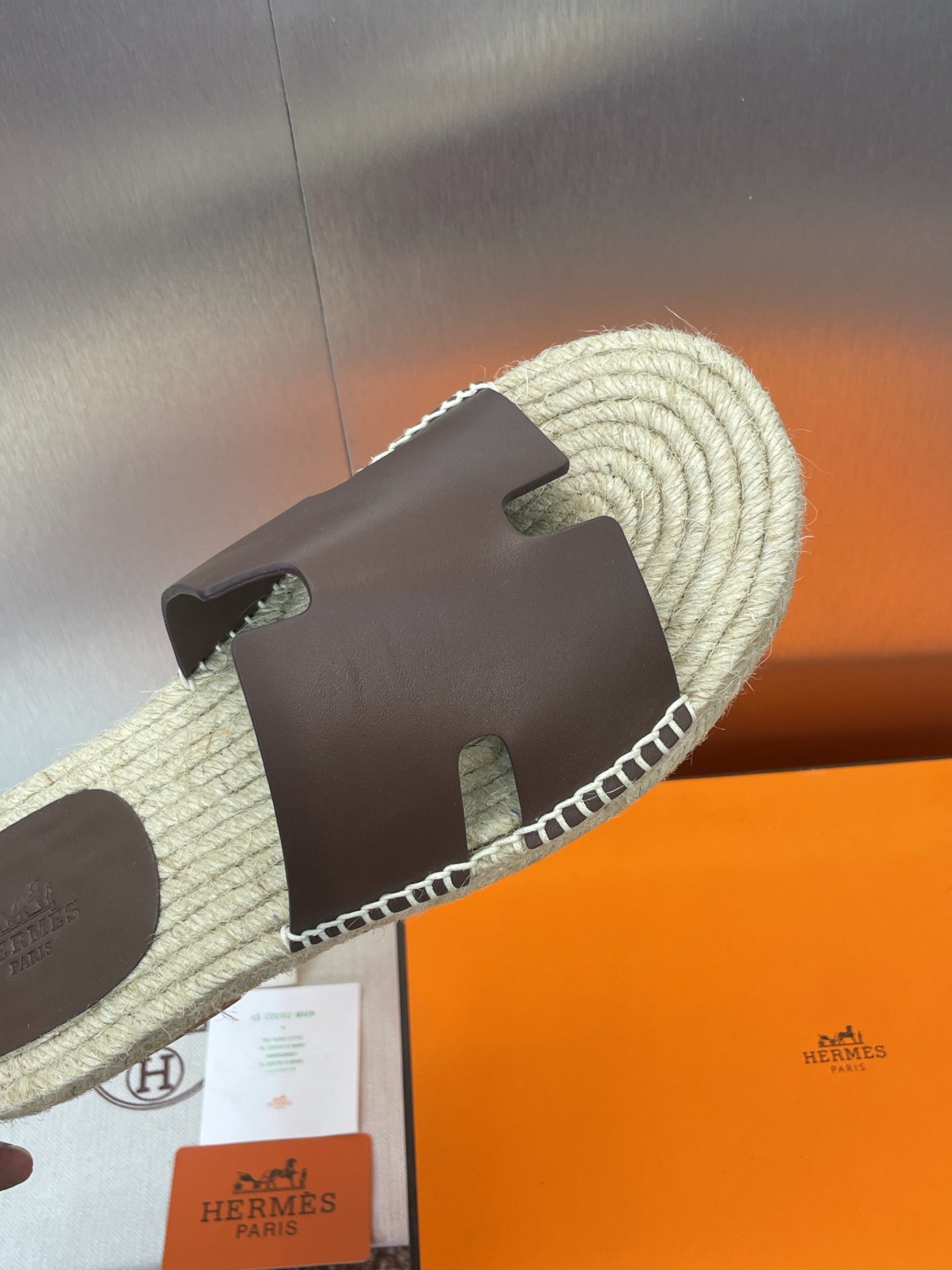 HM Lthea Espadrille Brown Calfskin And Jute Rope 969496