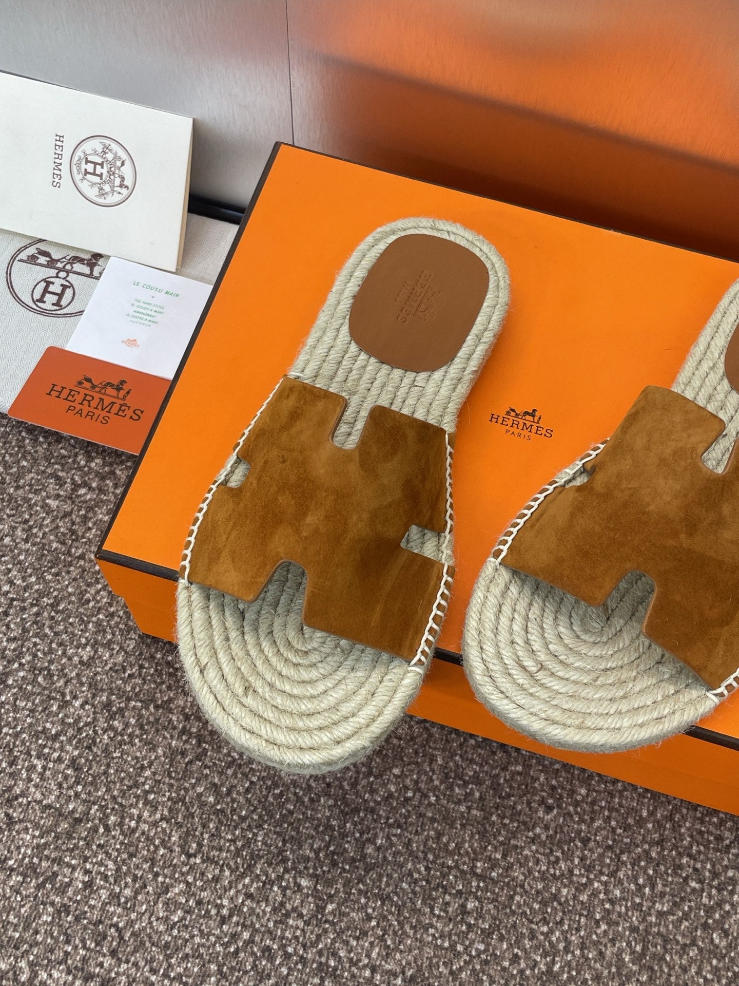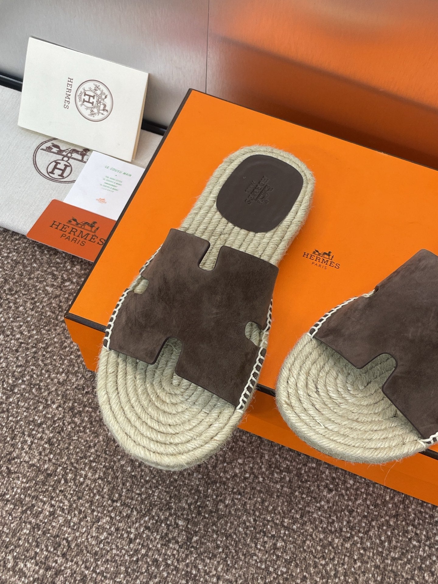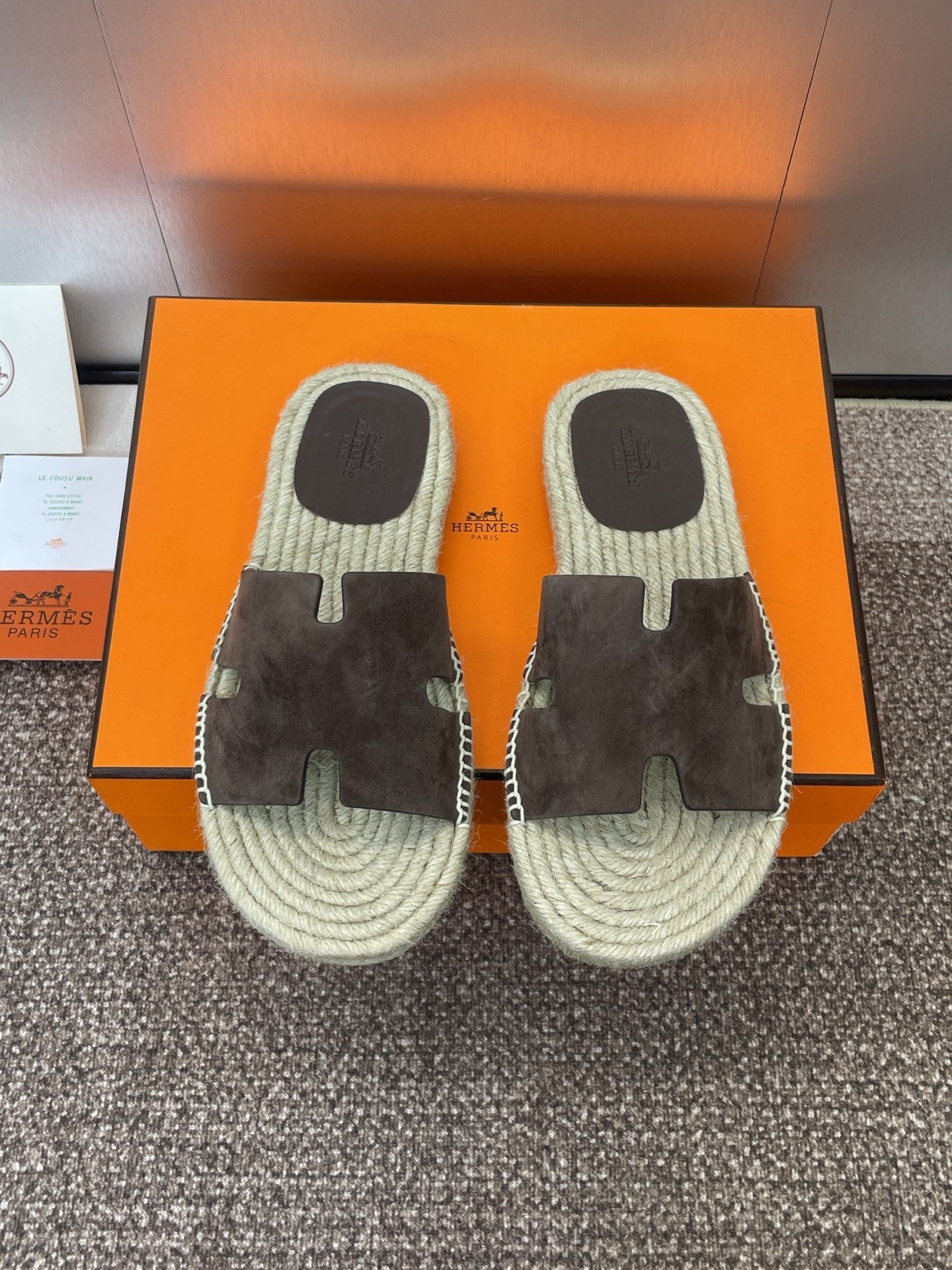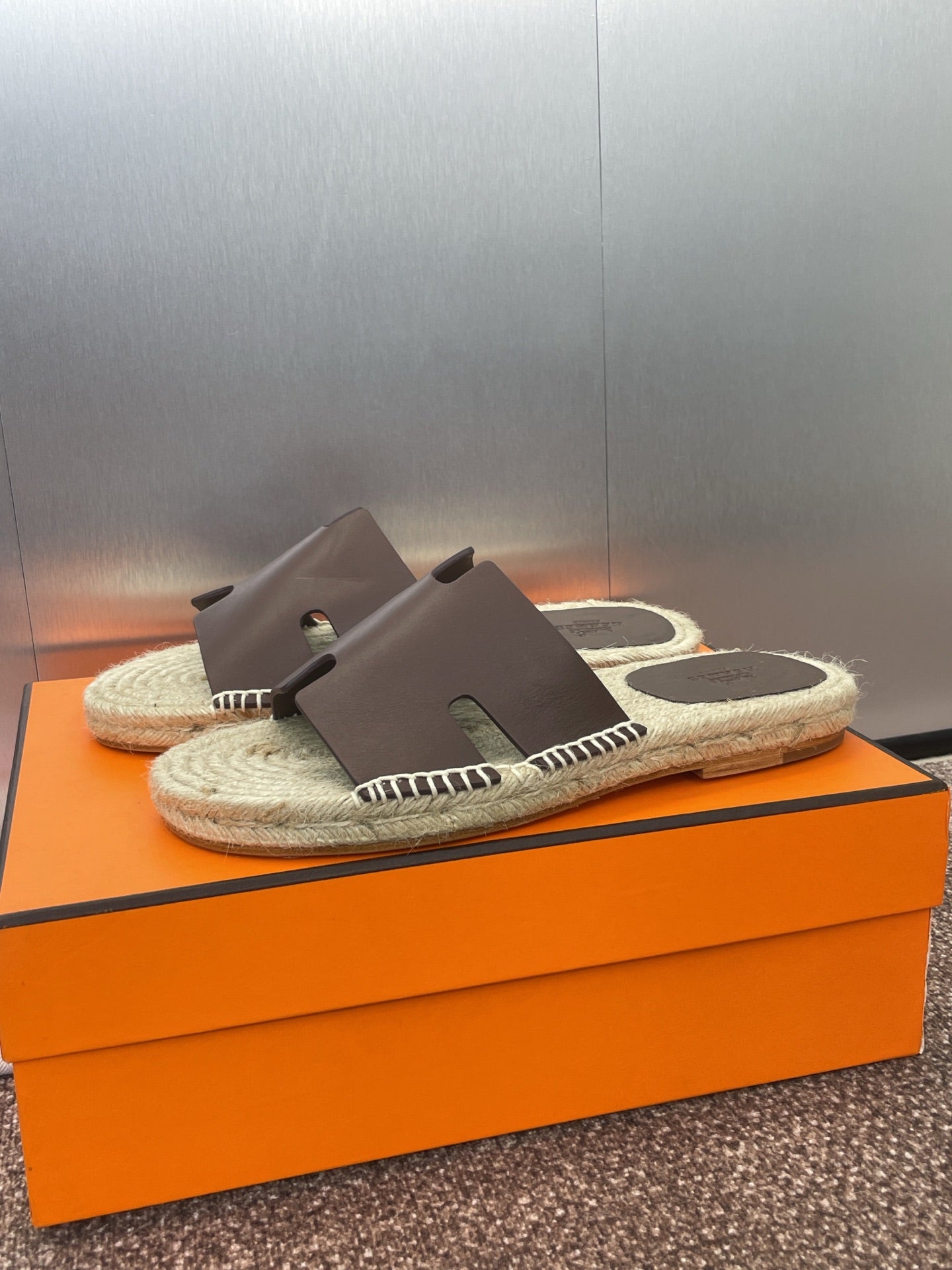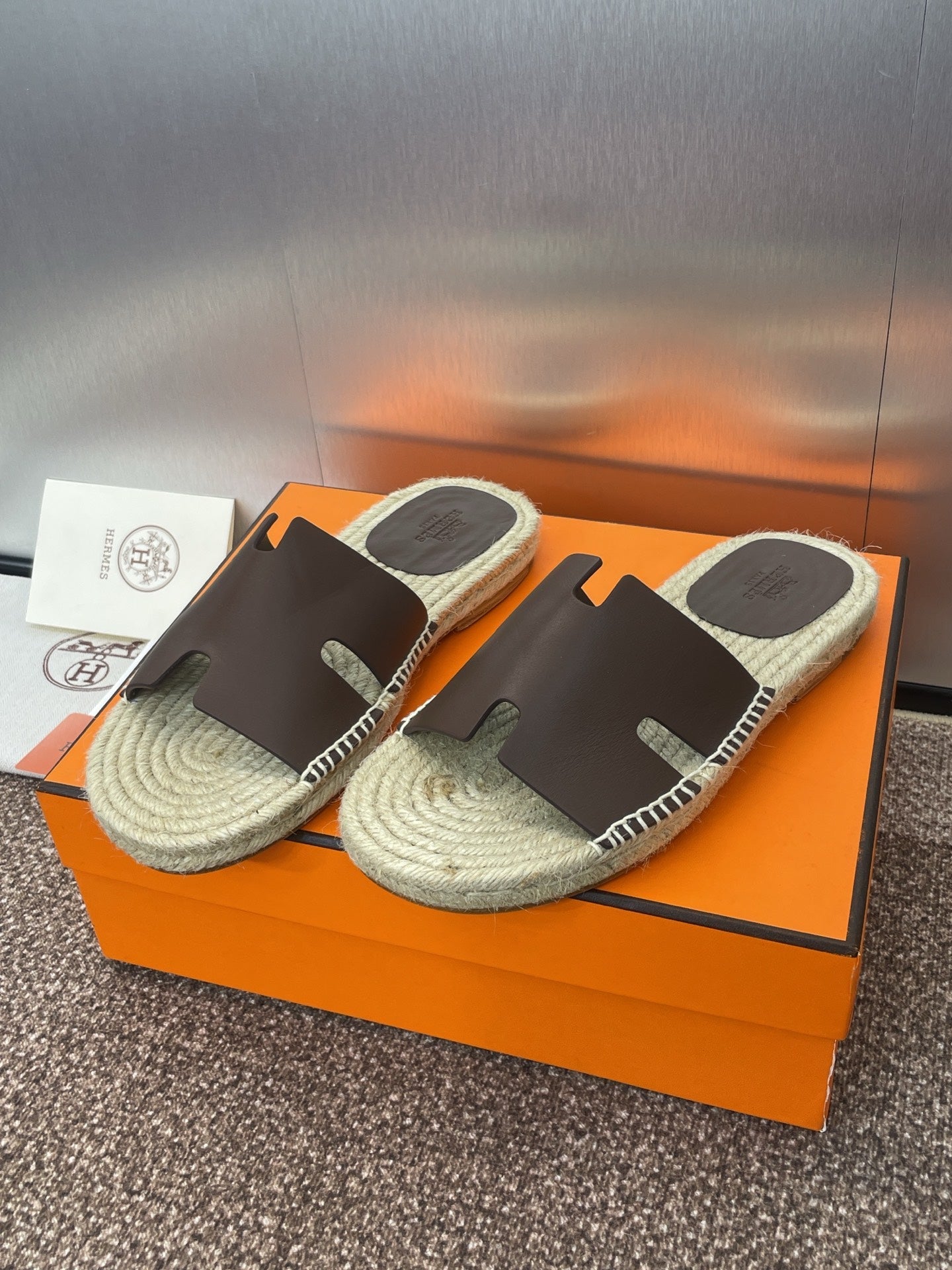 HM Lthea Espadrille Brown Calfskin And Jute Rope 969496