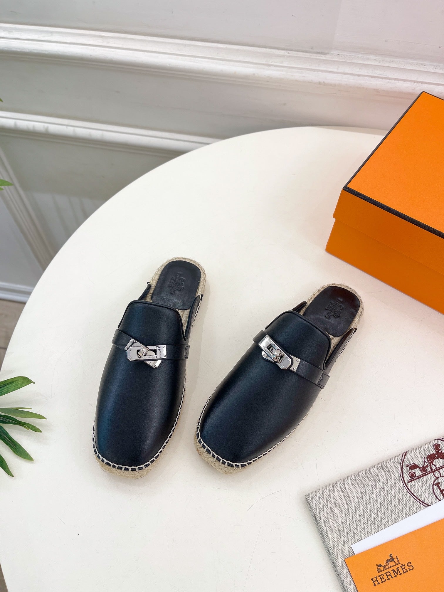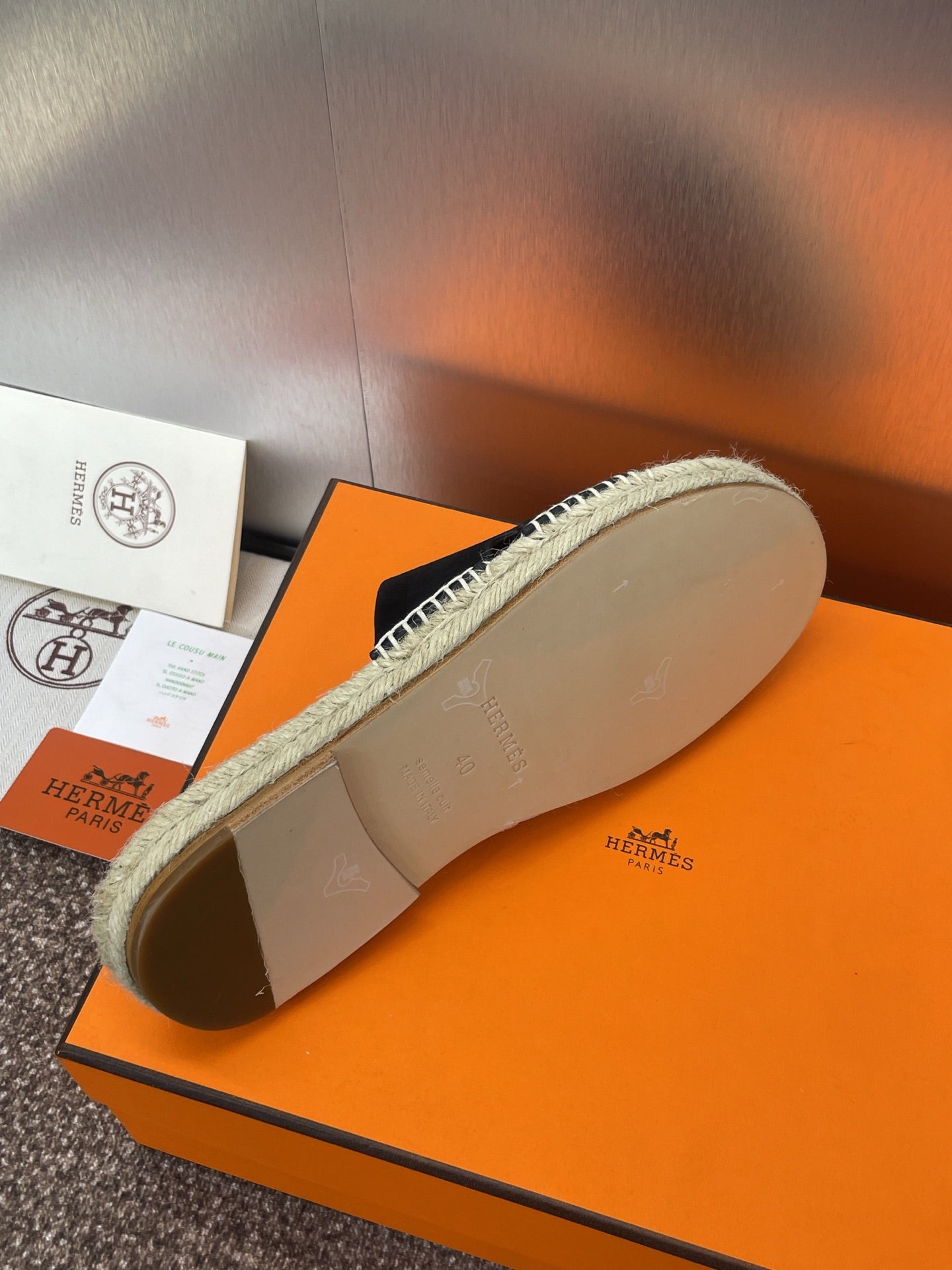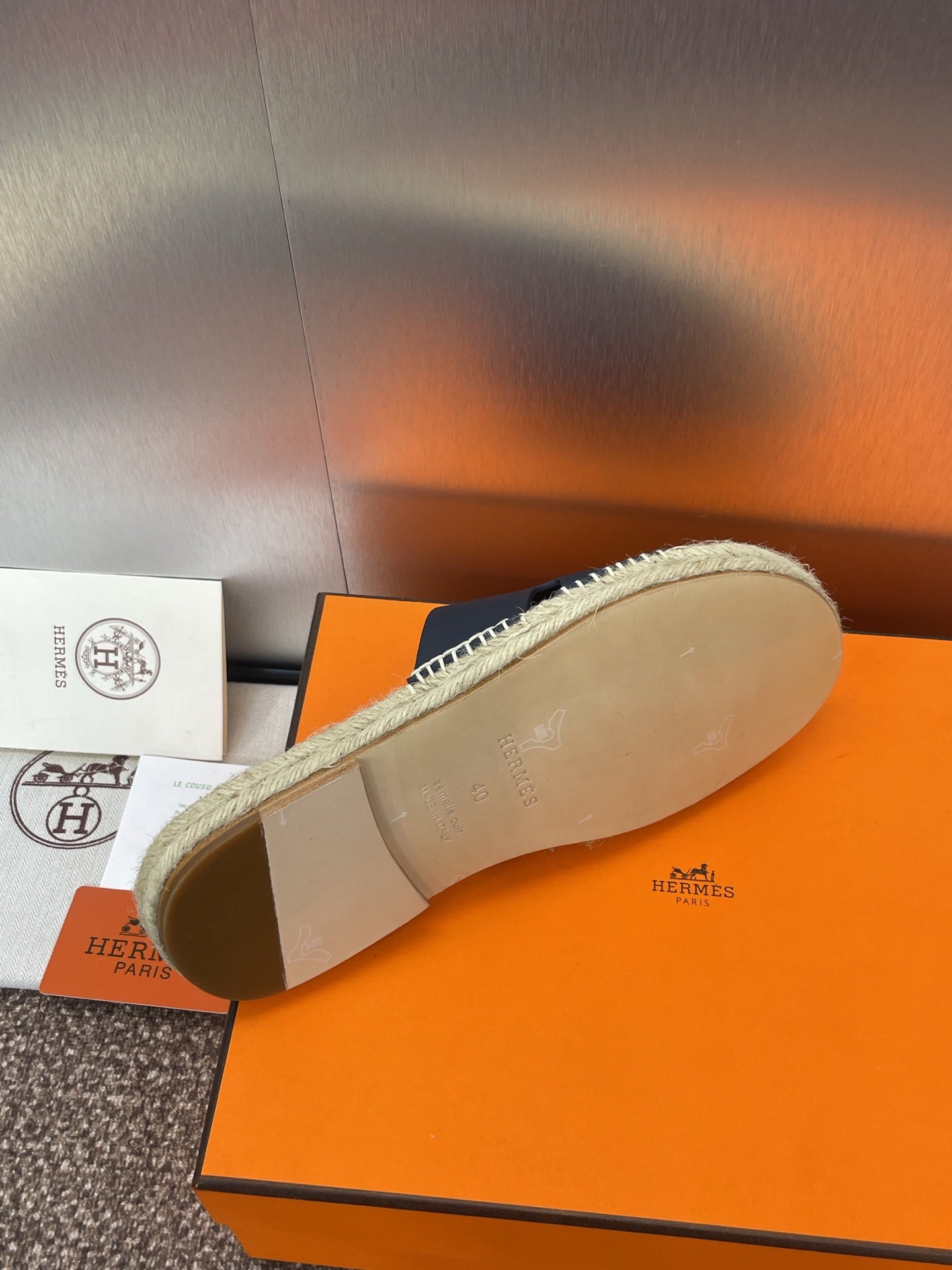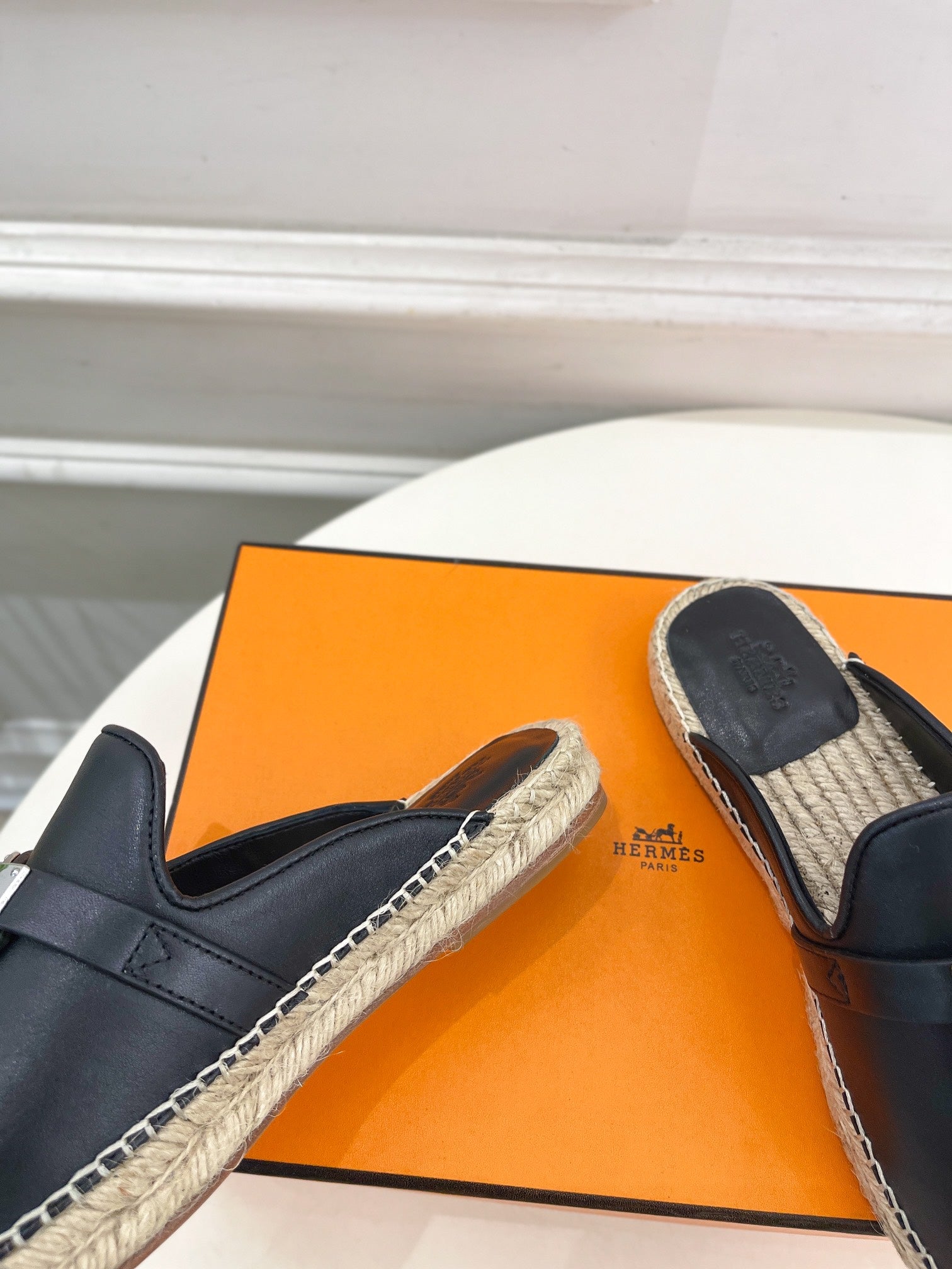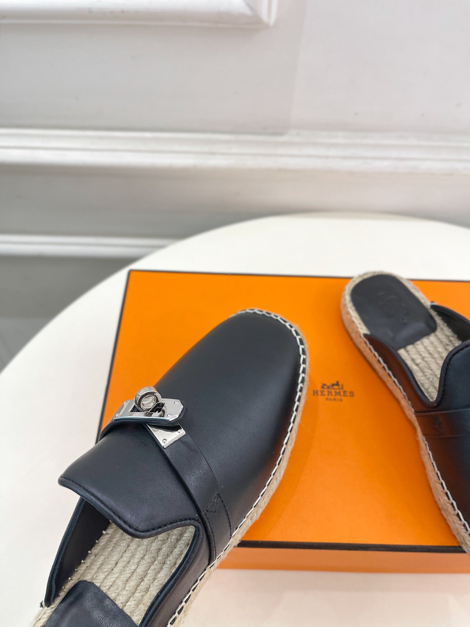 HM Lthea Espadrille Black Calfskin And Jute Rope 969498