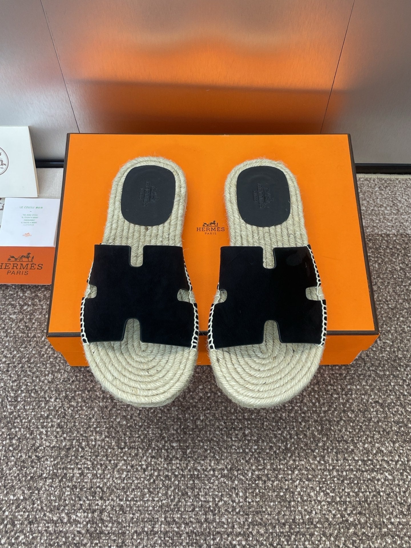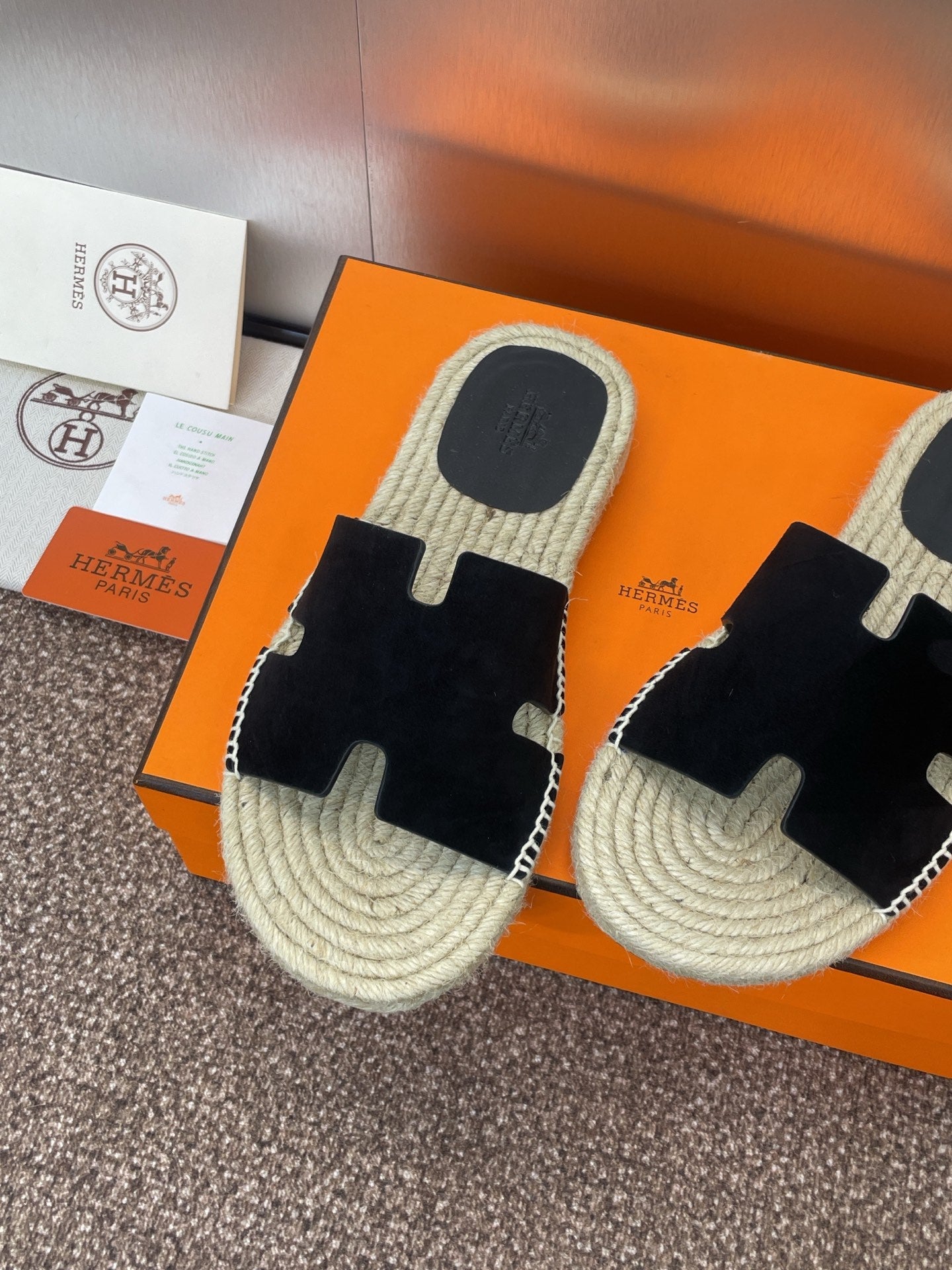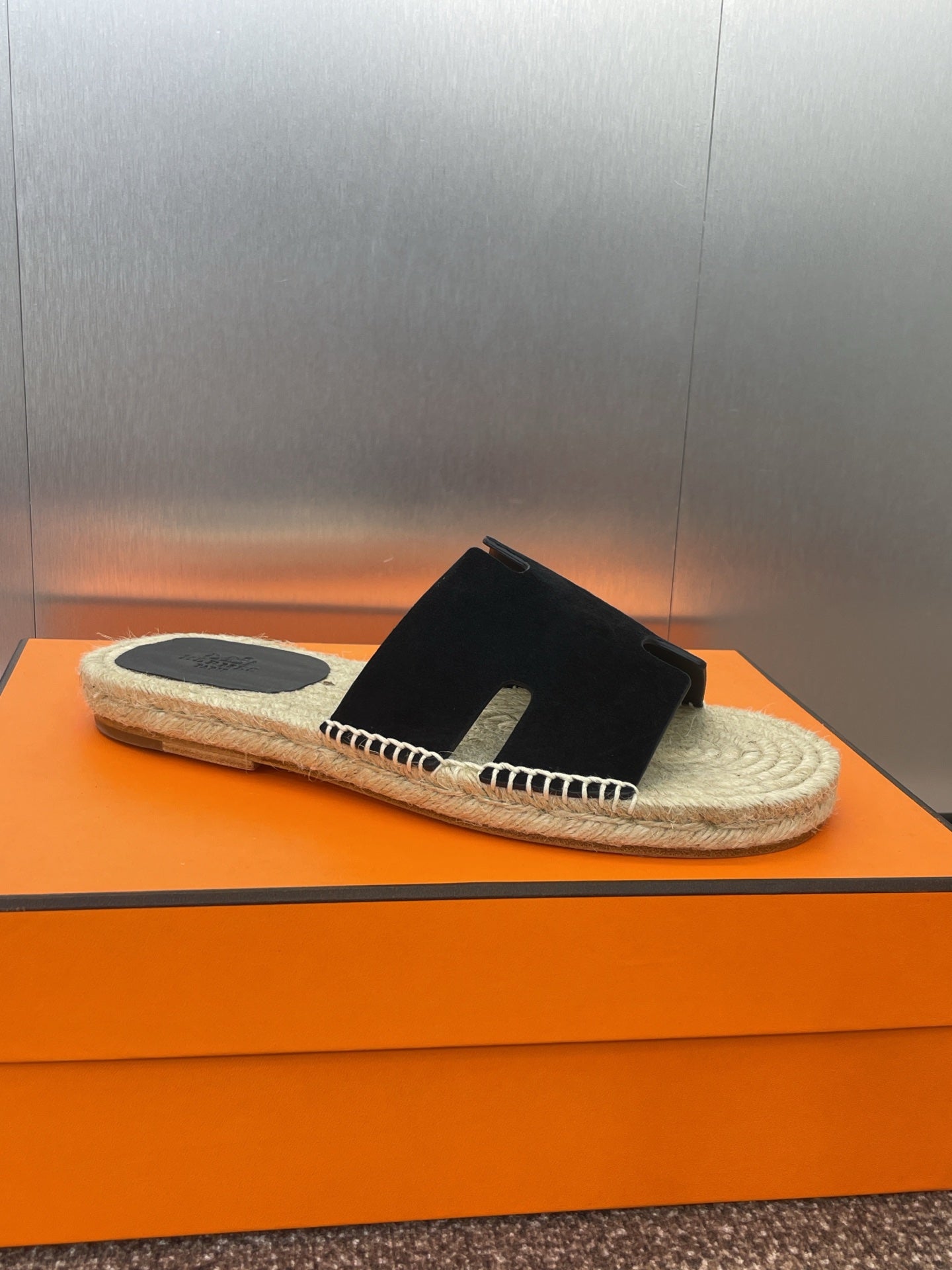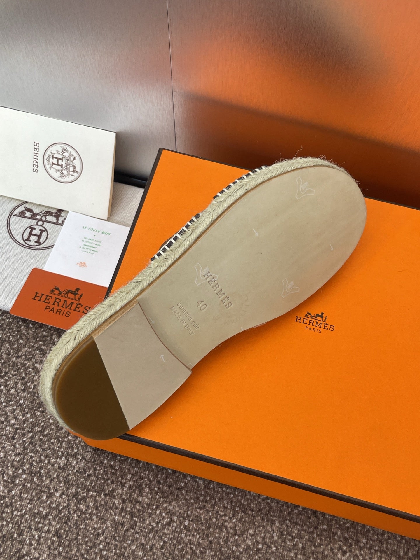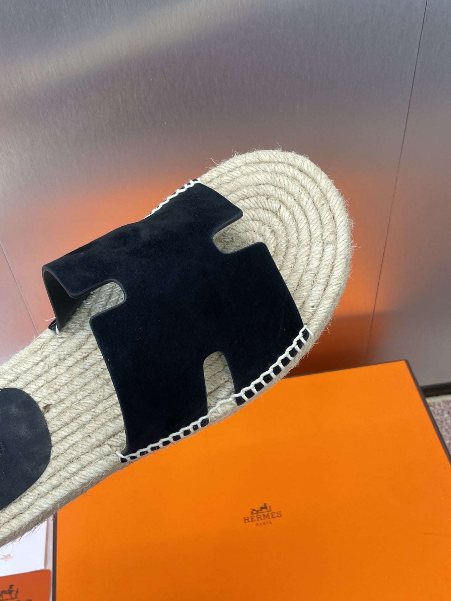 HM Lthea Espadrille Black Calfskin And Jute Rope 969498