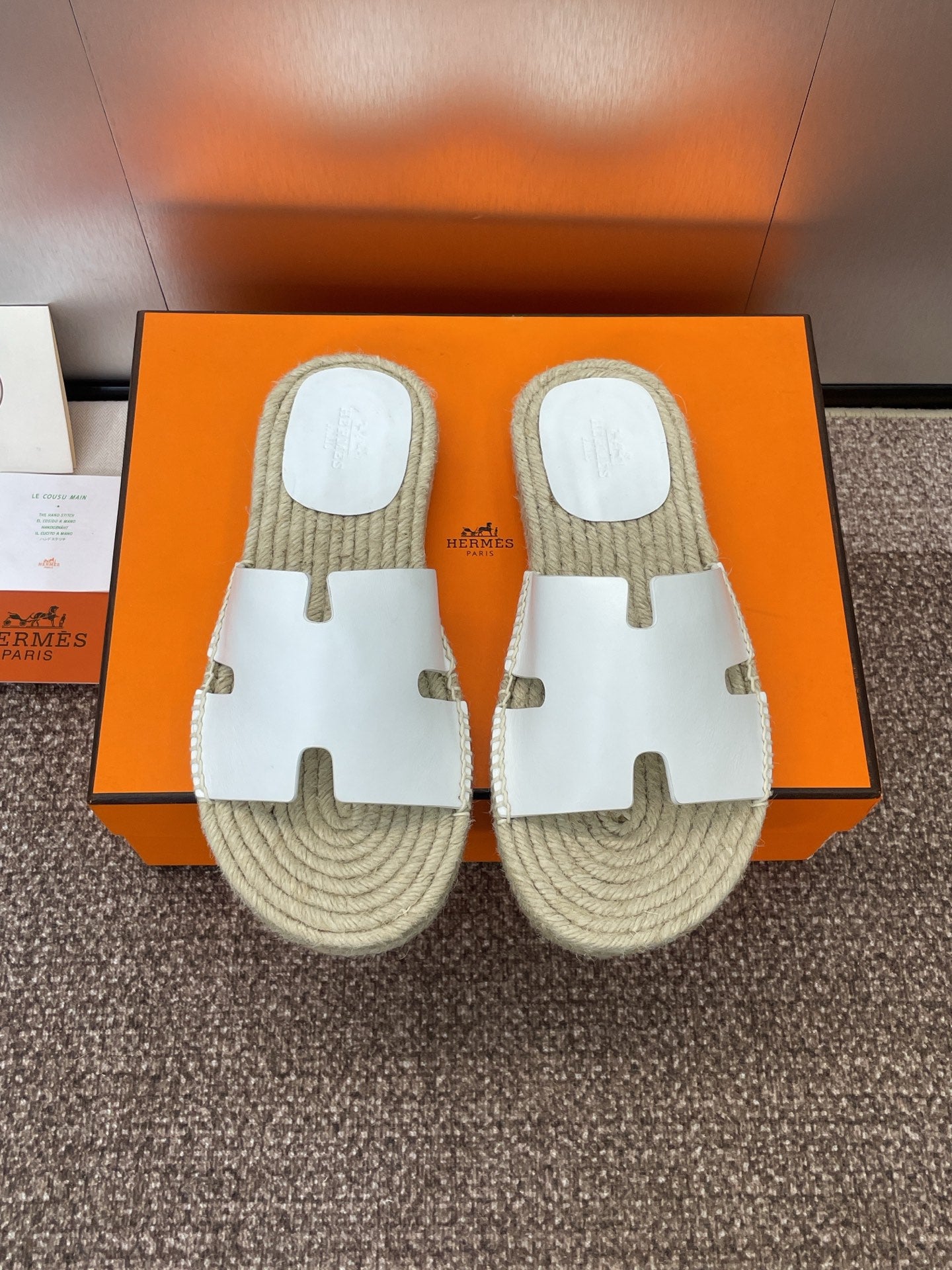 HM Feria Espadrille 20mm White Calfskin And Handwoven Hemp Rope 967989