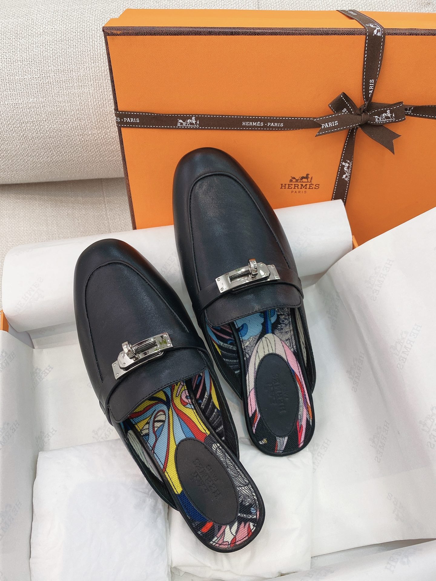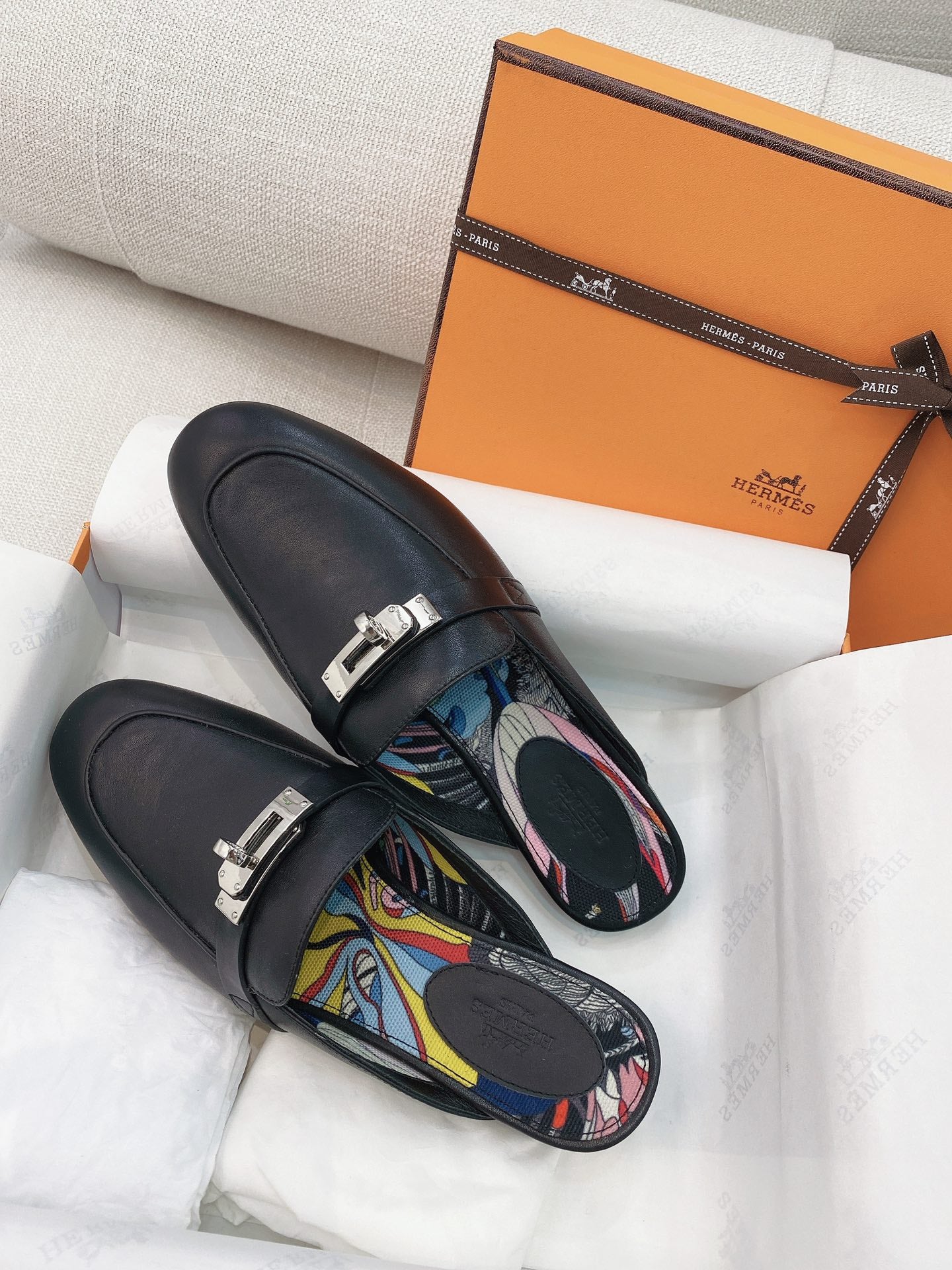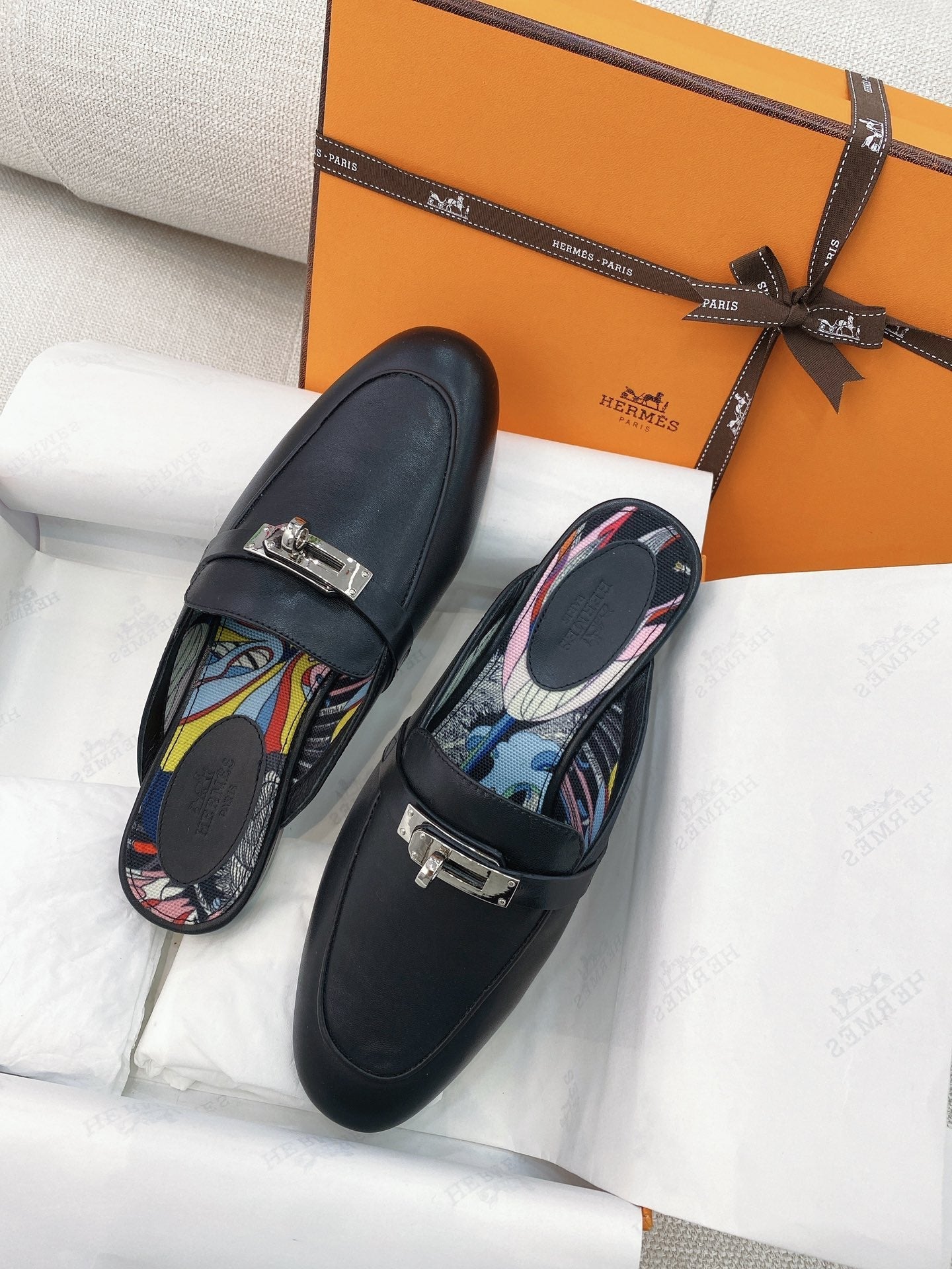 HM Buckle Tassel Mule Black Goat Leather 348025