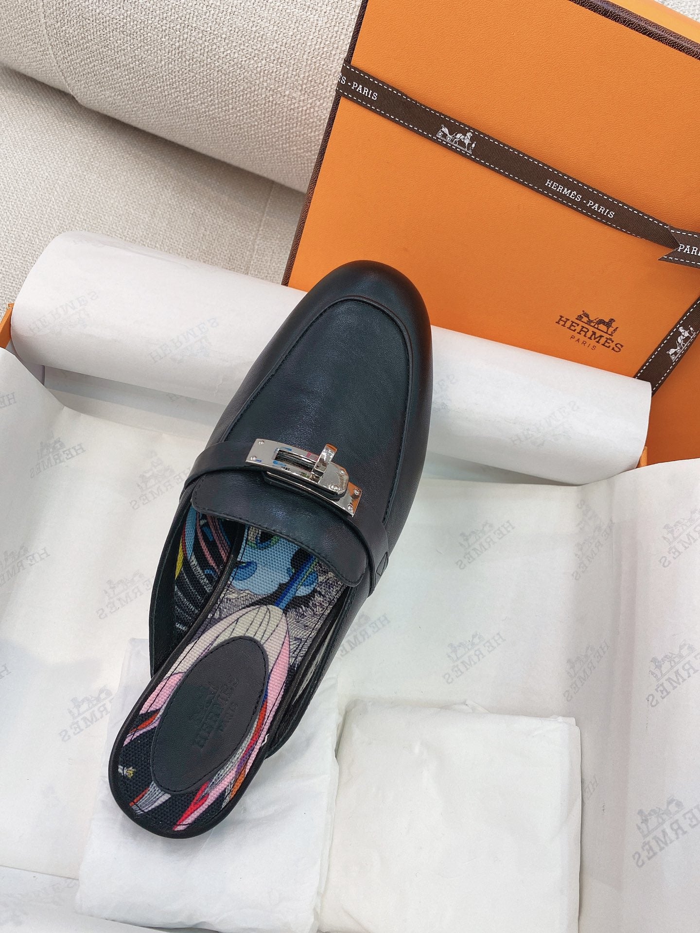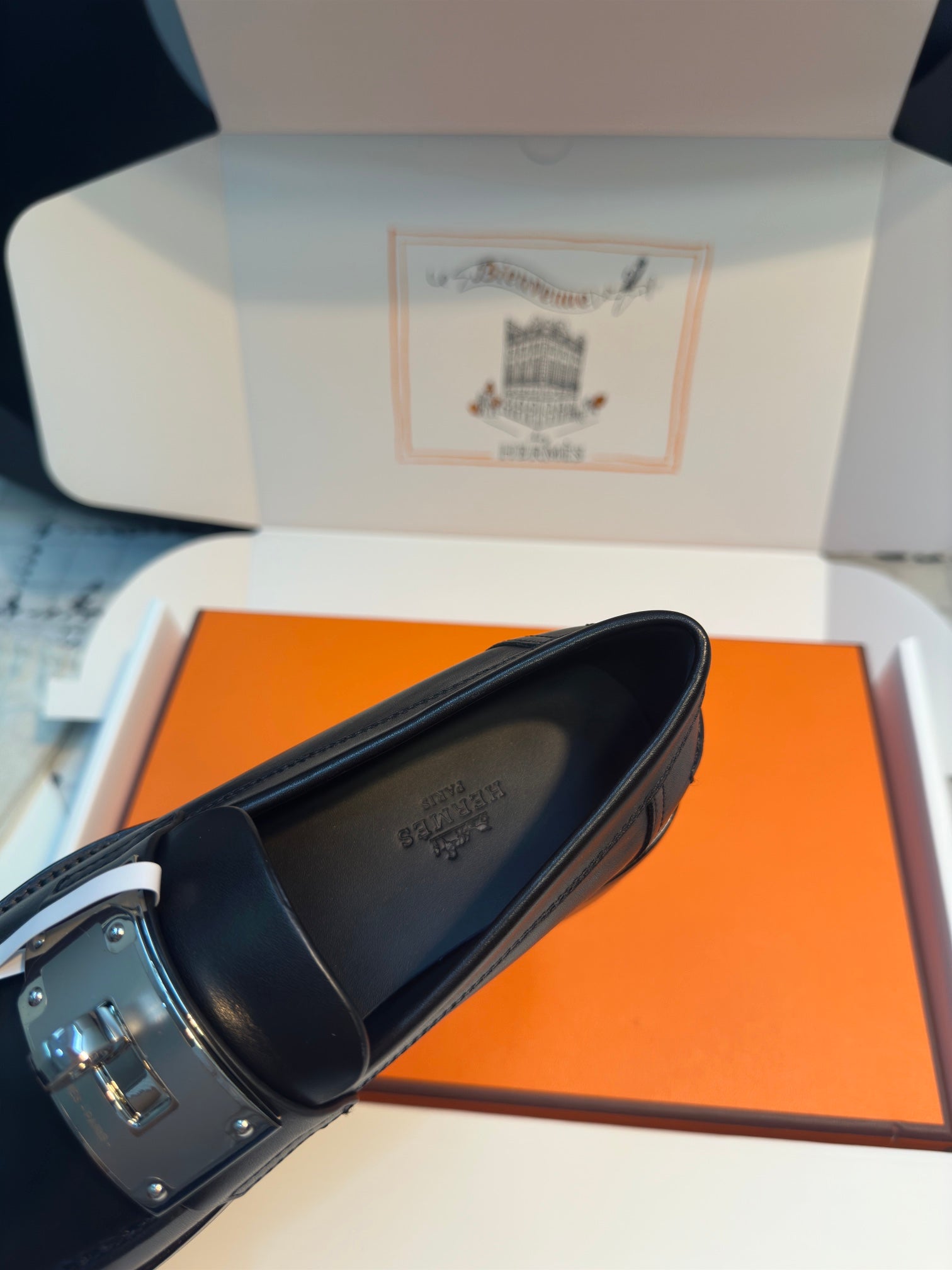 HM Mocassins Royal Loafers Black Goat Leather 348021