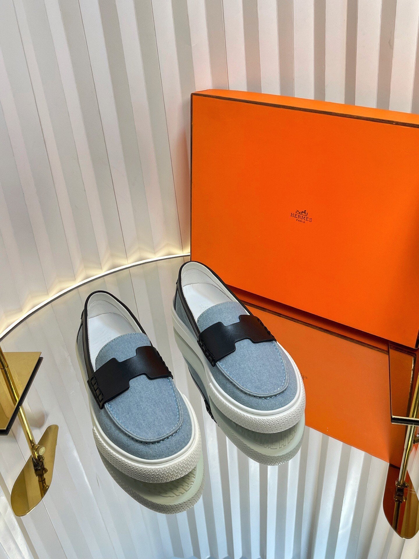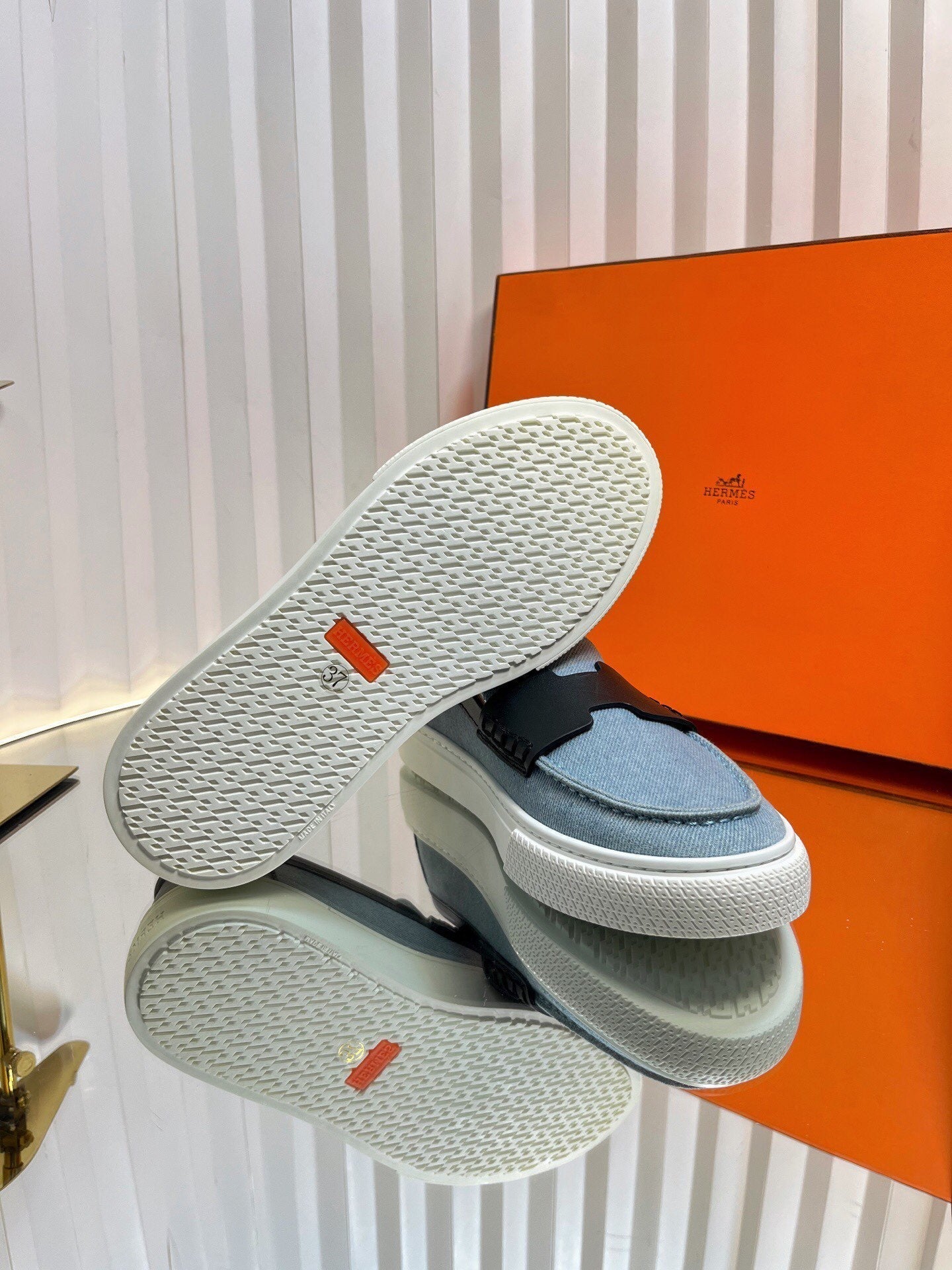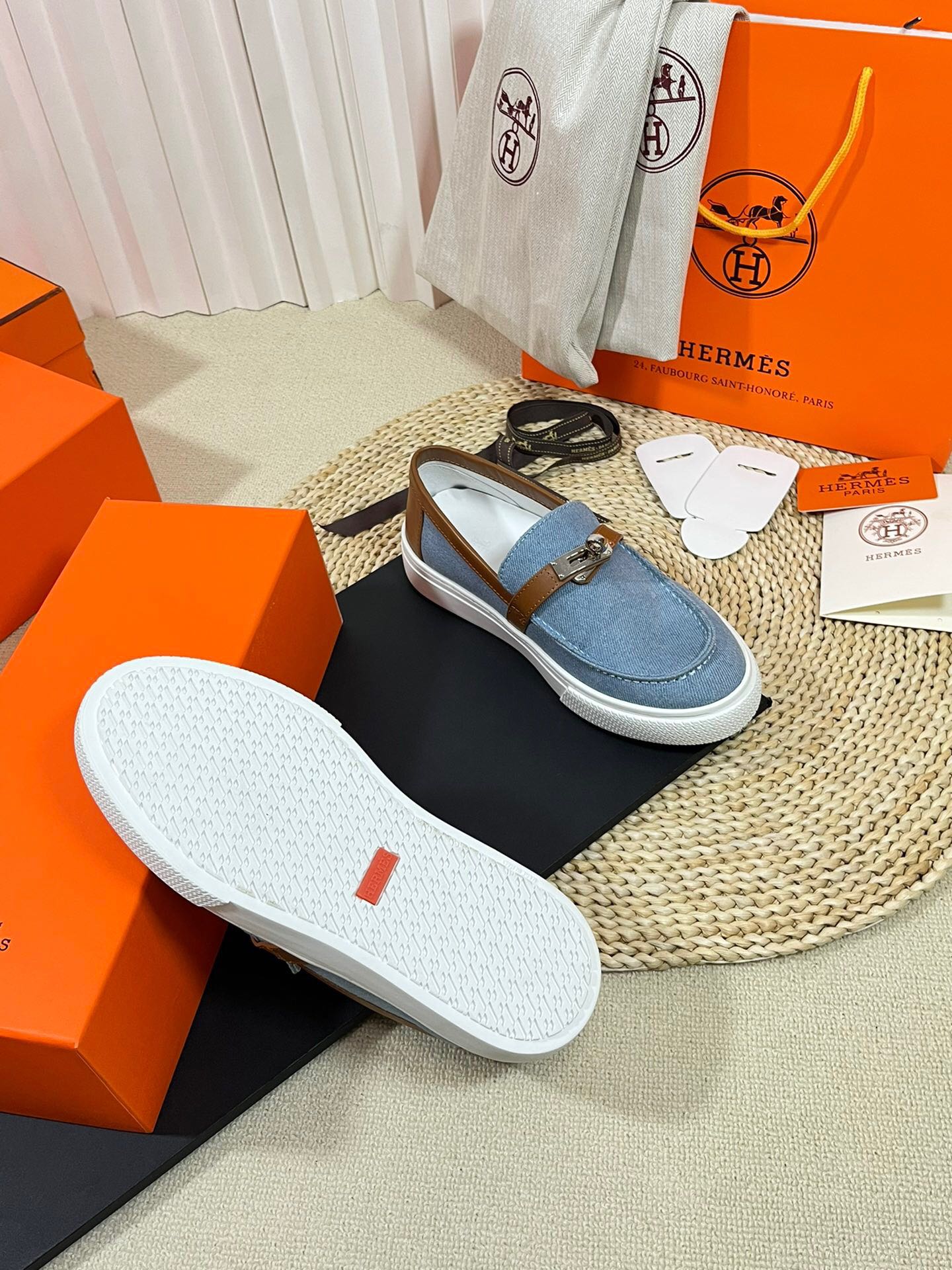 HM Denim Loafer Blue White Cowhide Cloth 317048