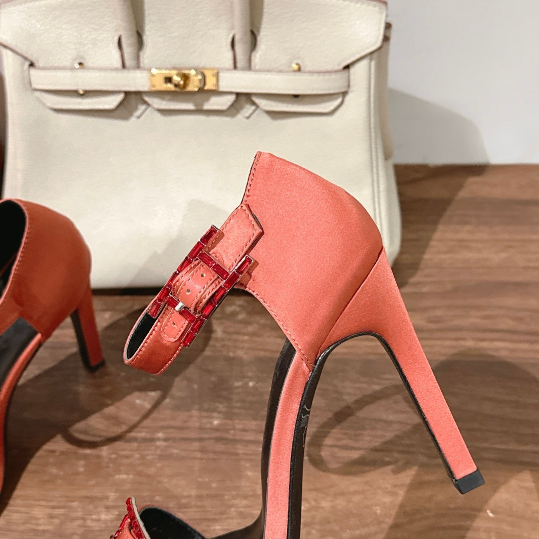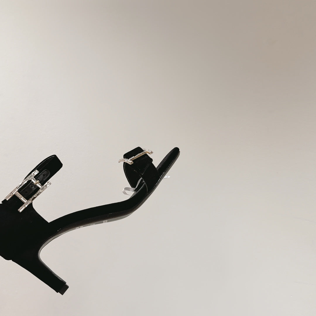 HM Buckle Sandals 10.5cm Black Calfskin 308180