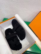 Chypre Sandal Black shearling insole Black Velvet leather lining