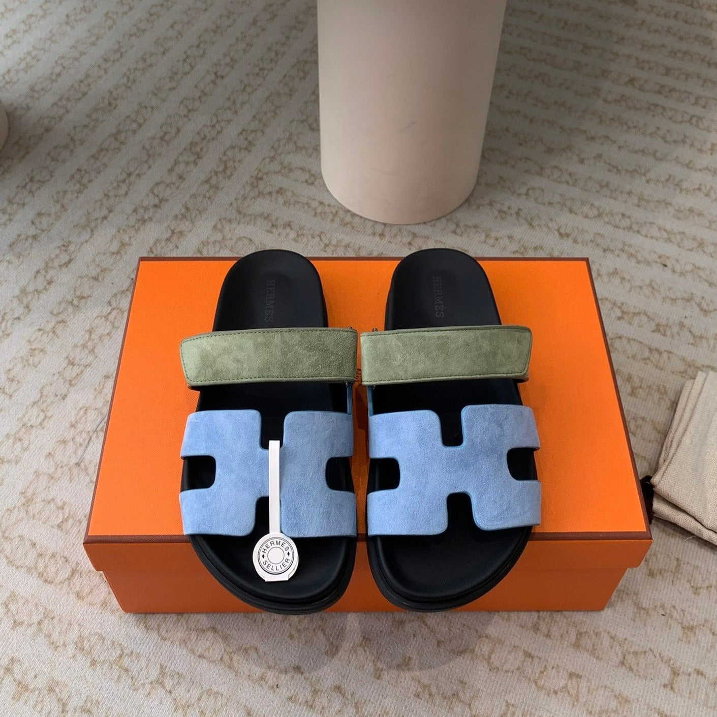 chypre sandal olive turquoise blue suede black calfskin