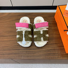 HM Chypre Sandal In Army Green Mix Pink Fleece And Suede 984192