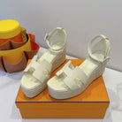 - Material: Cowhide, wedged rope heel