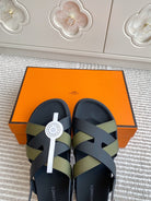 HM Heracles Sandals Black Army Green Calfskin 291450