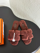 HM Oran Sandal Dark Brown Red Wool Fleece 961014
