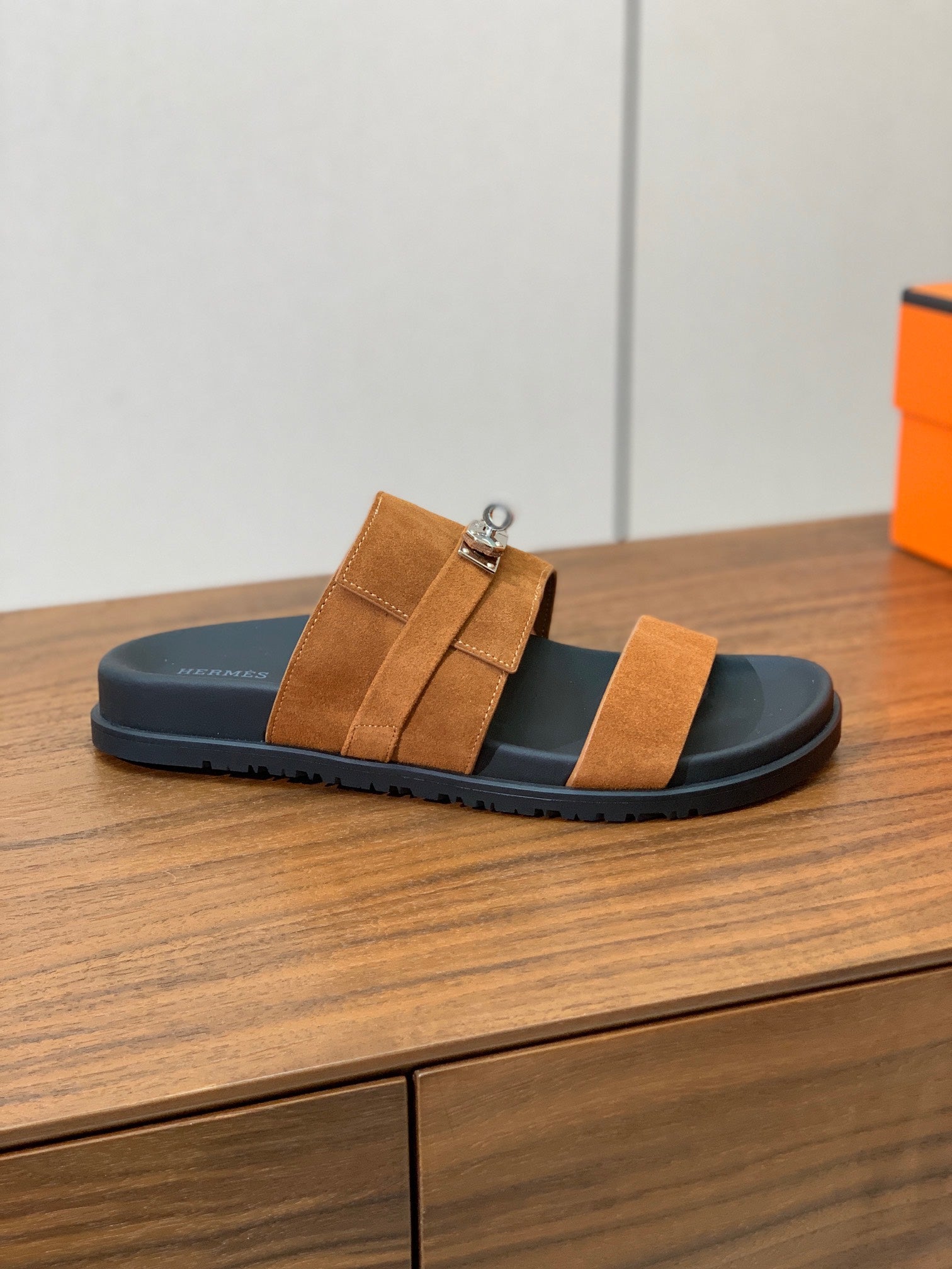 HM Kazimir Sandal Brown Suede Calfskin 294031