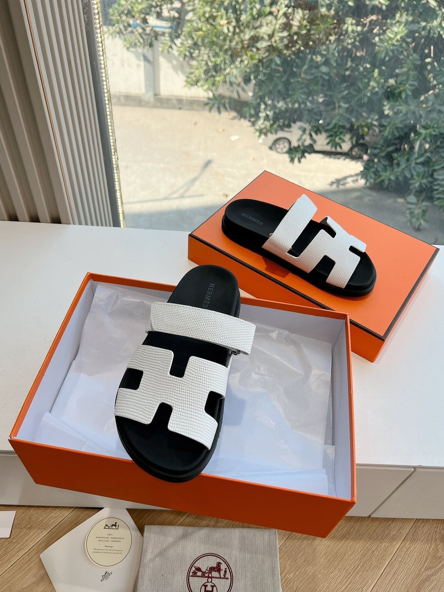 HM Chypre Sandal Black Mix White Calfskin 202814