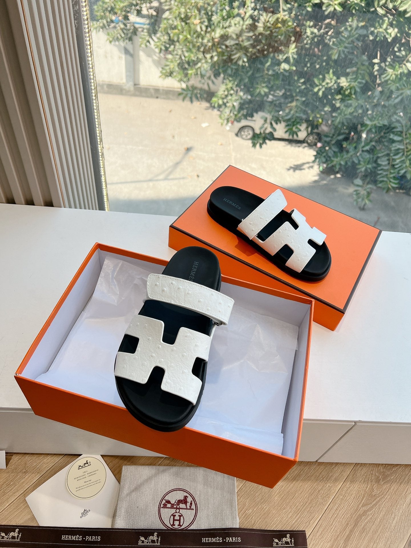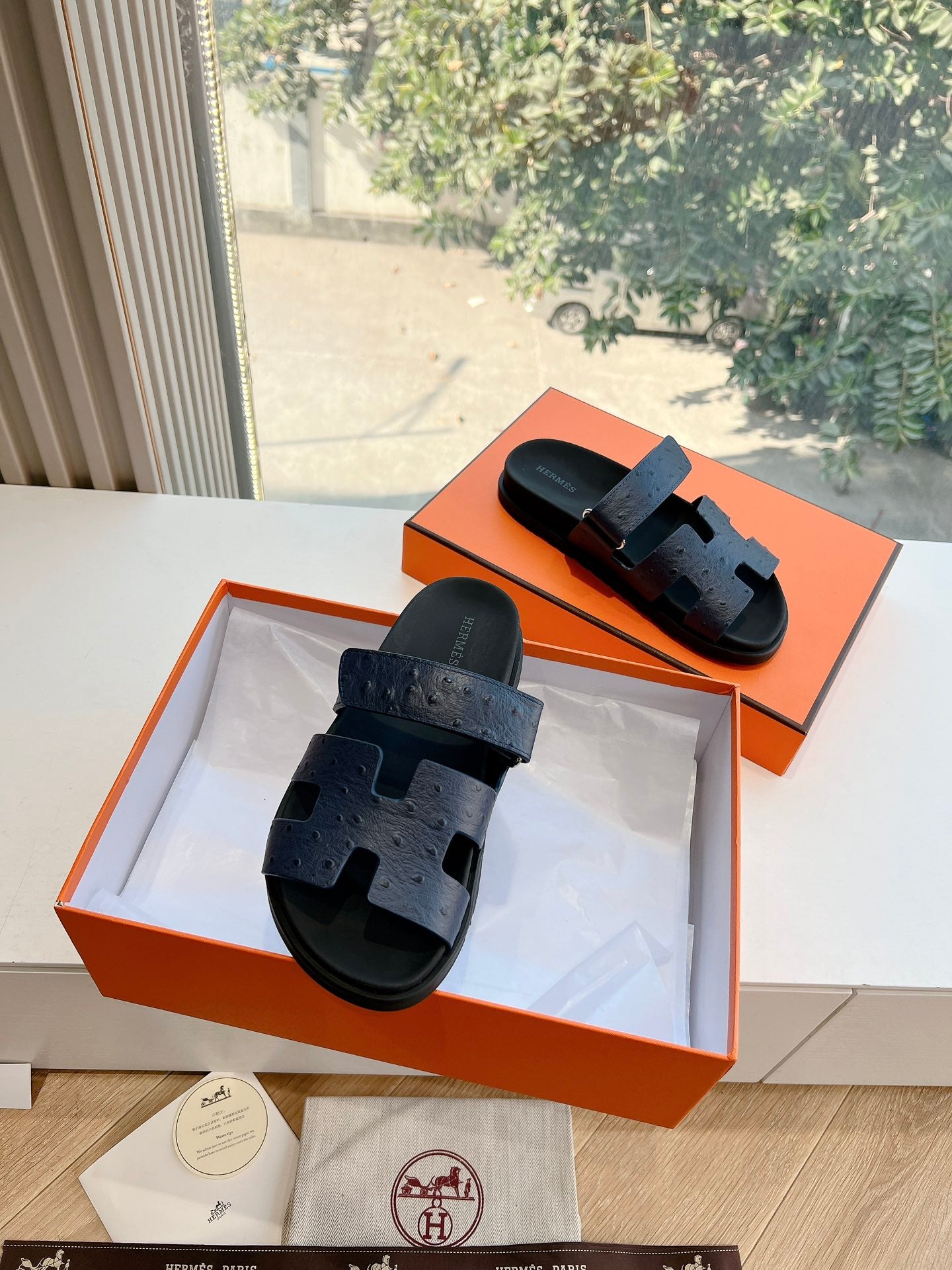 HM Chypre Sandal Brownie Brown Ostrich Leather 202802