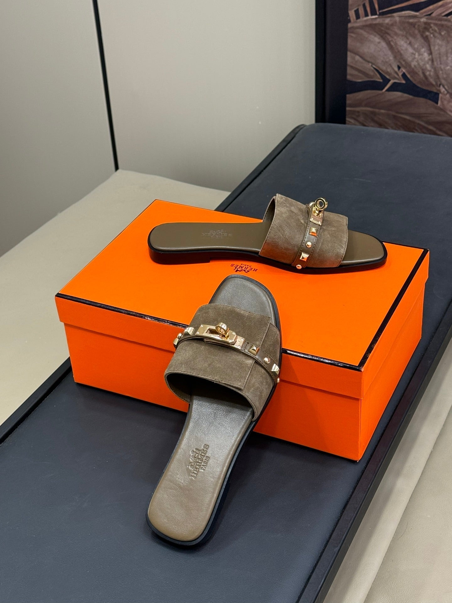 HM Chypre Sandal Brownie Brown Grained Calfskin 202799