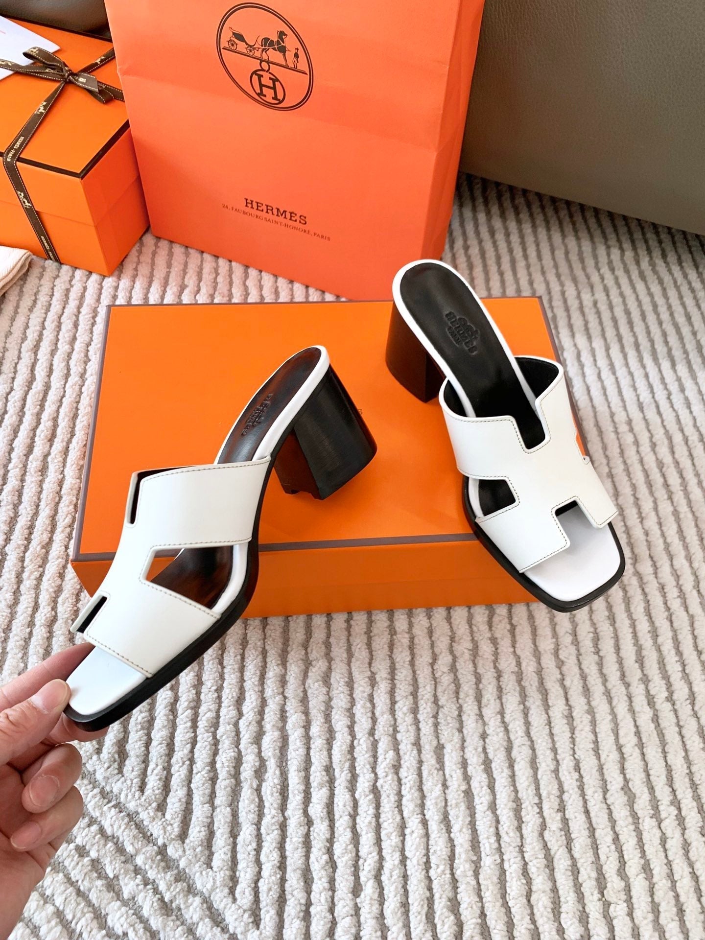 HM 25 Oran Sandal Brown Calfskin White Thread Embroidery