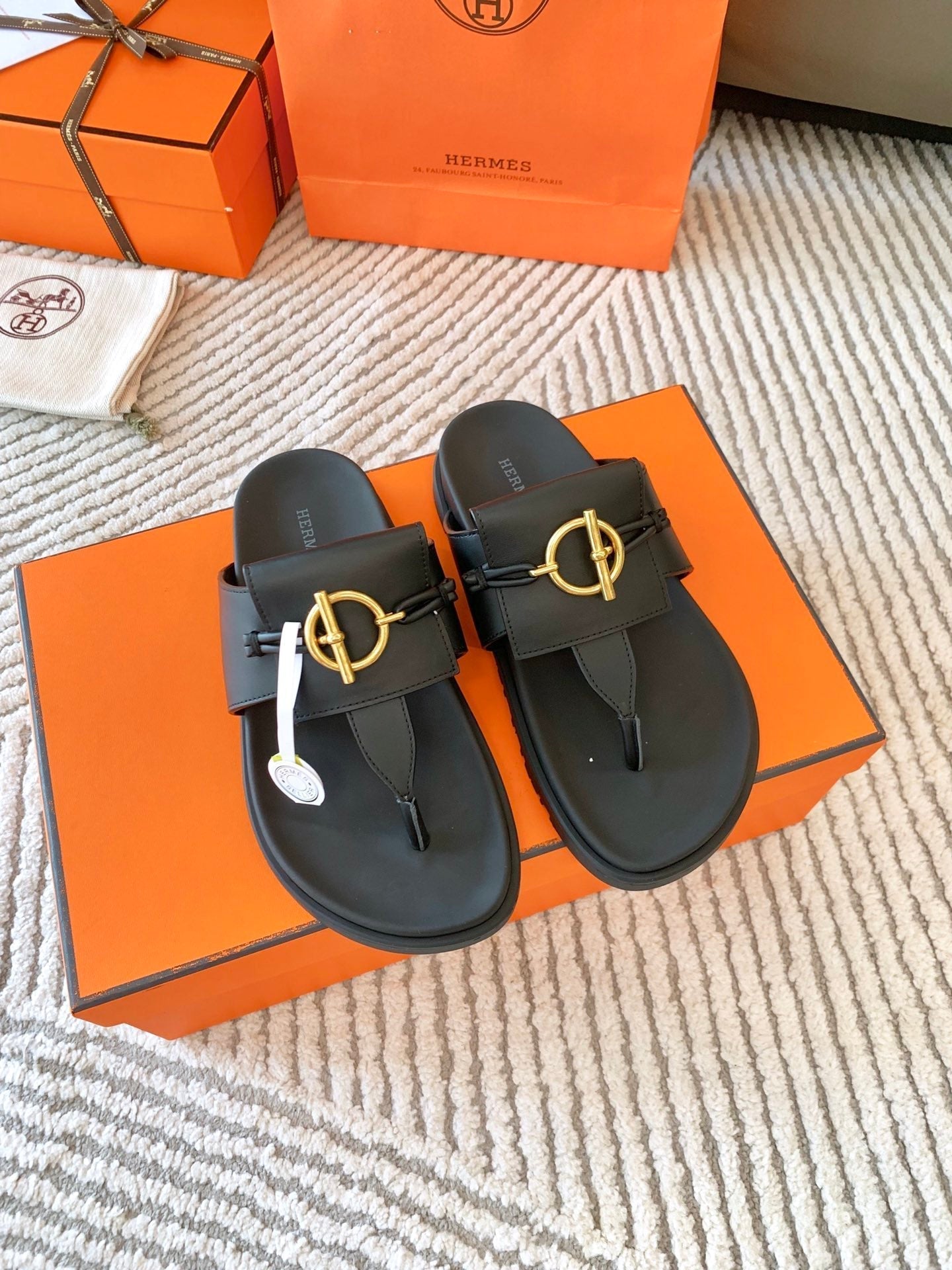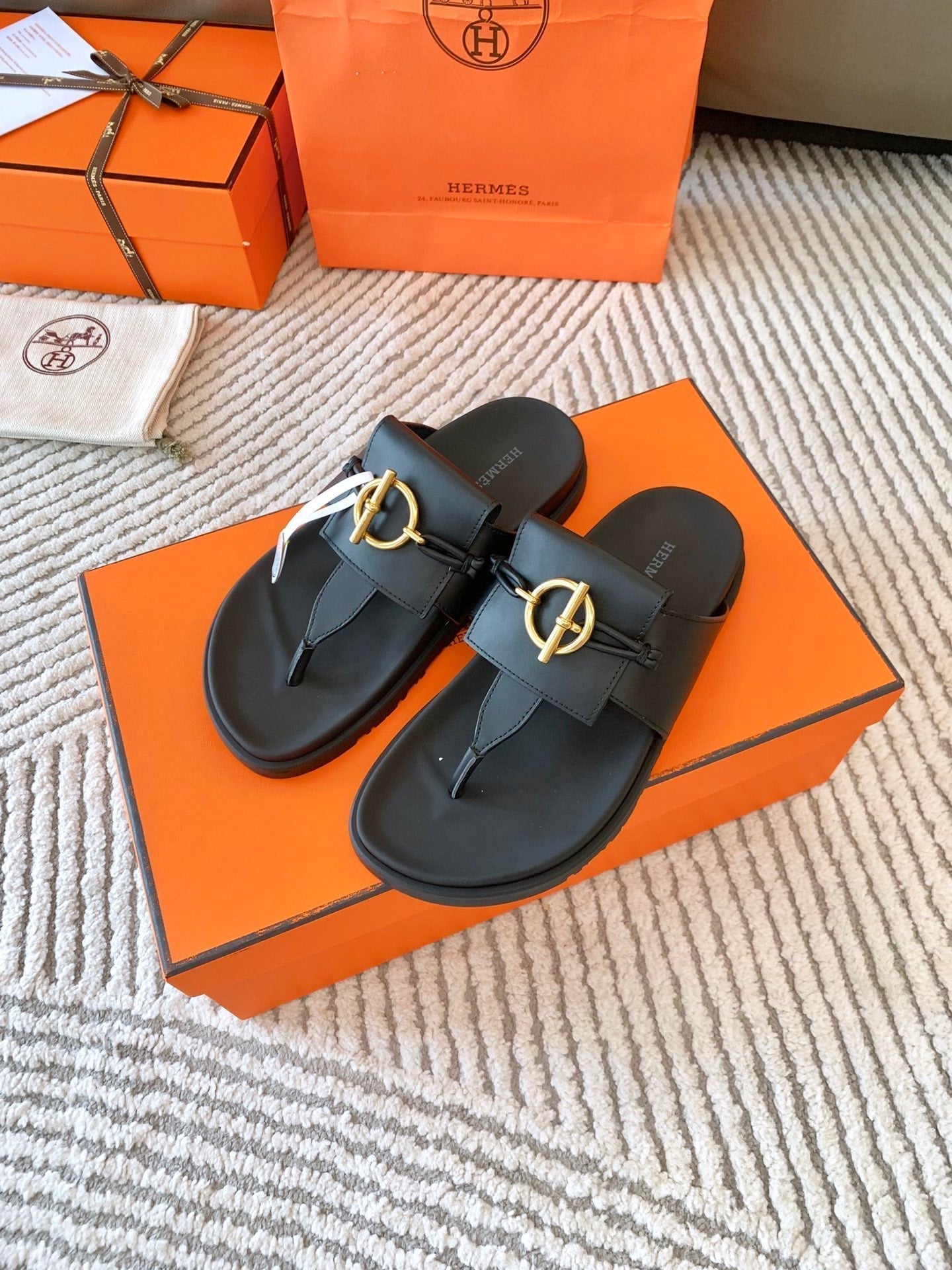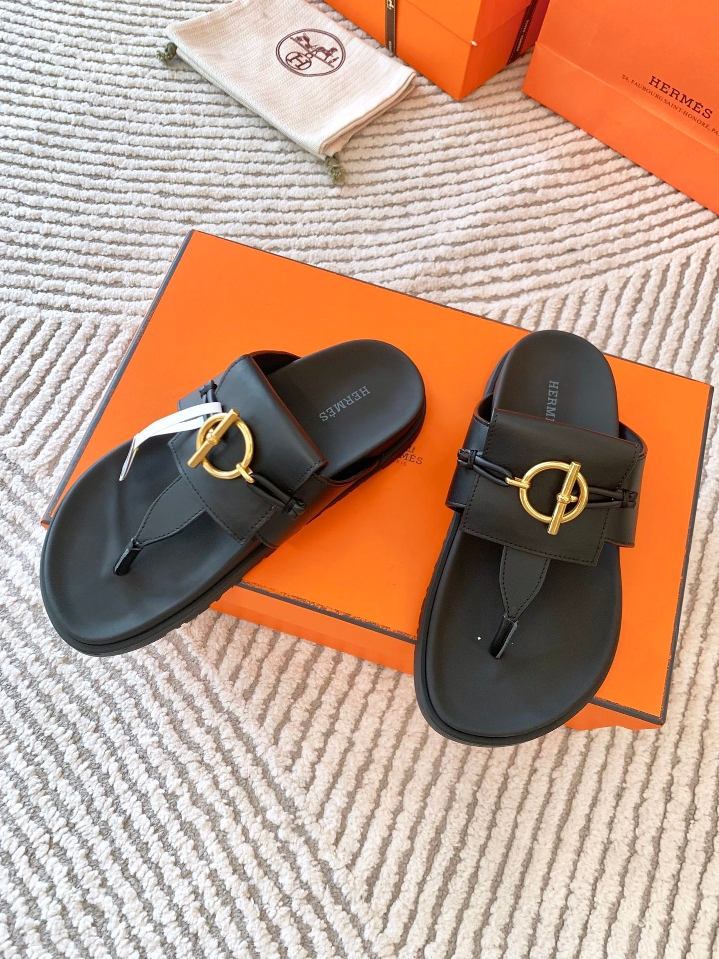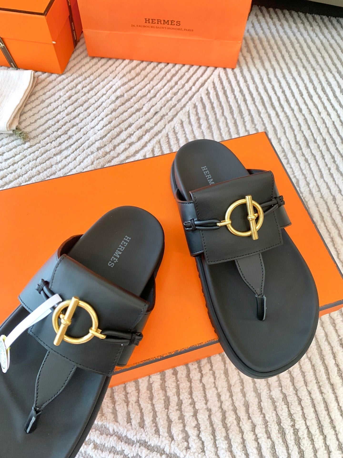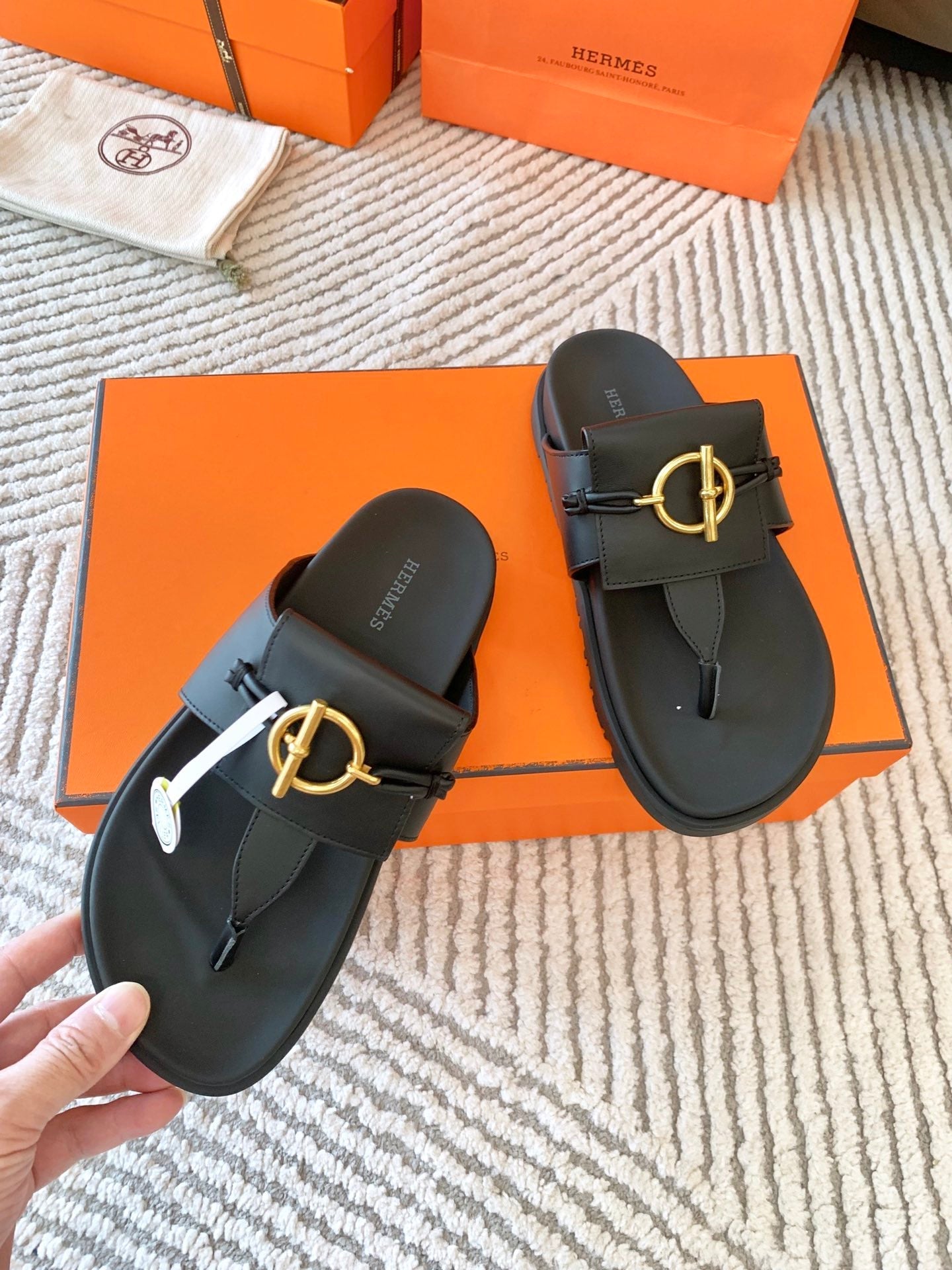 HM Chypre Sandal Black With White Stitching Lambskin 963494