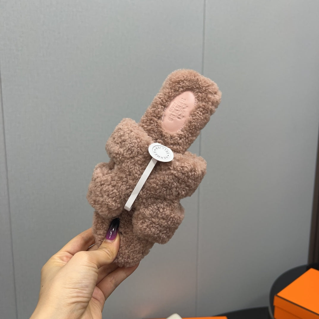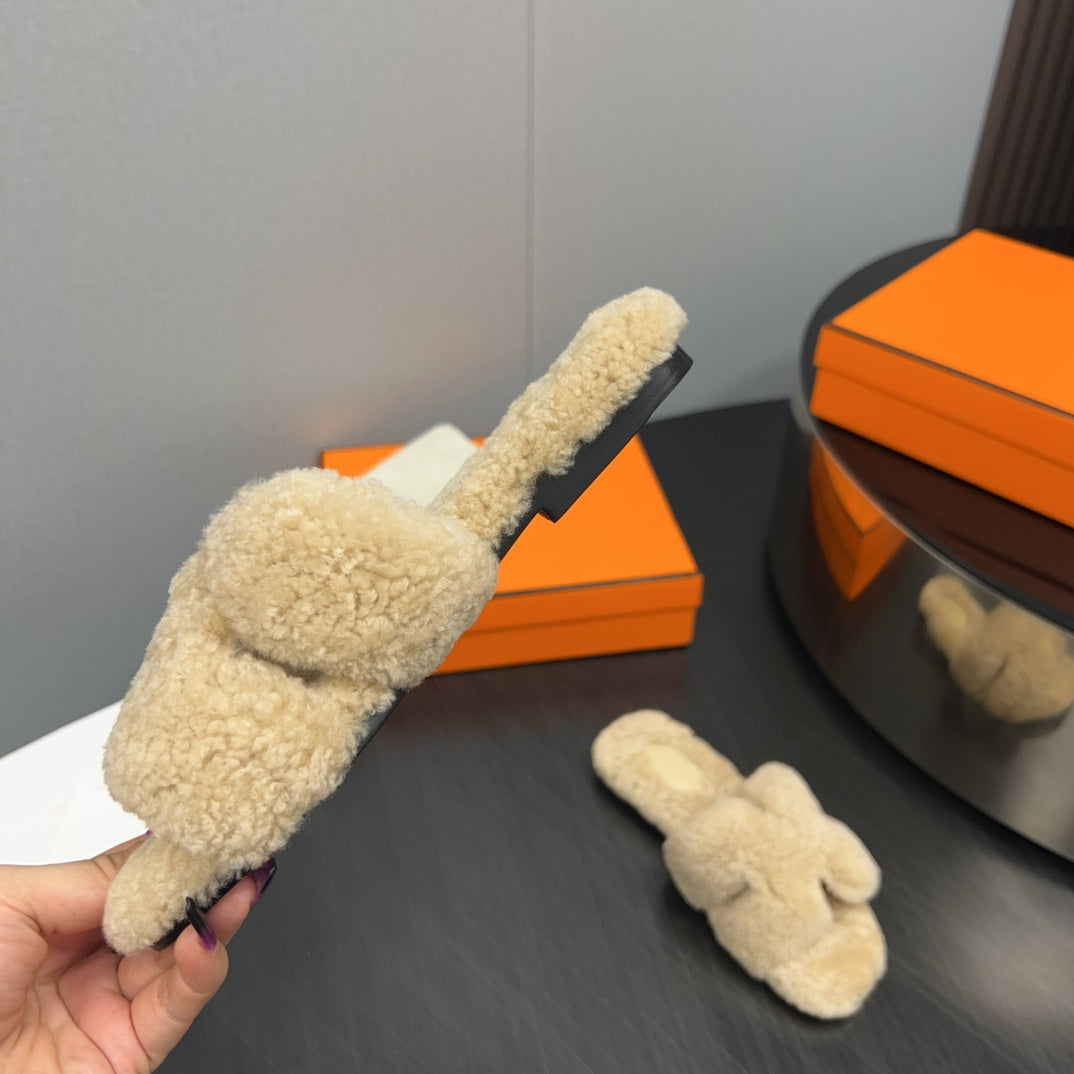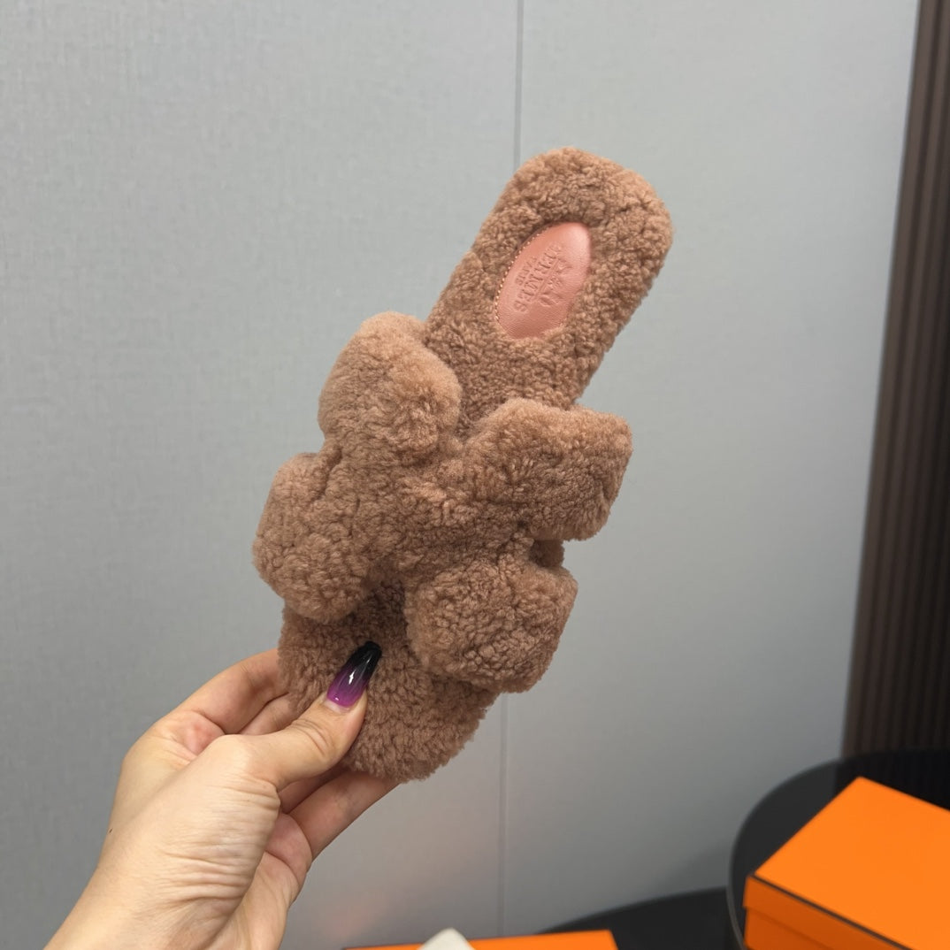 HM Chypre Sandal In Dark Beige Lamb Wool 984181