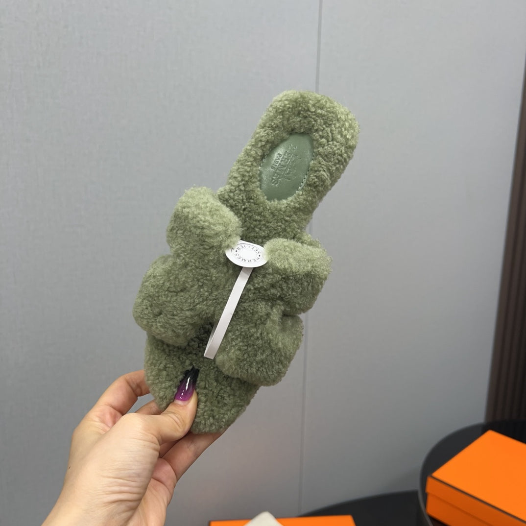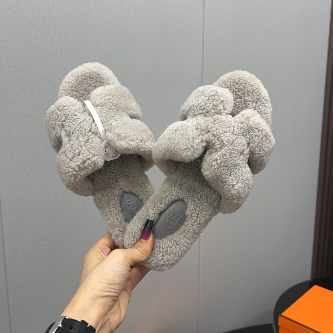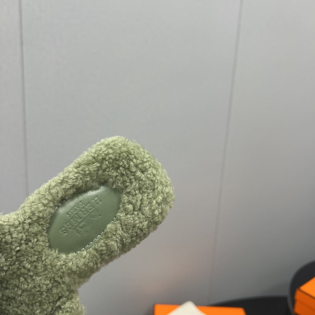 HM Chypre Sandal In Dark Beige Lamb Wool 984181