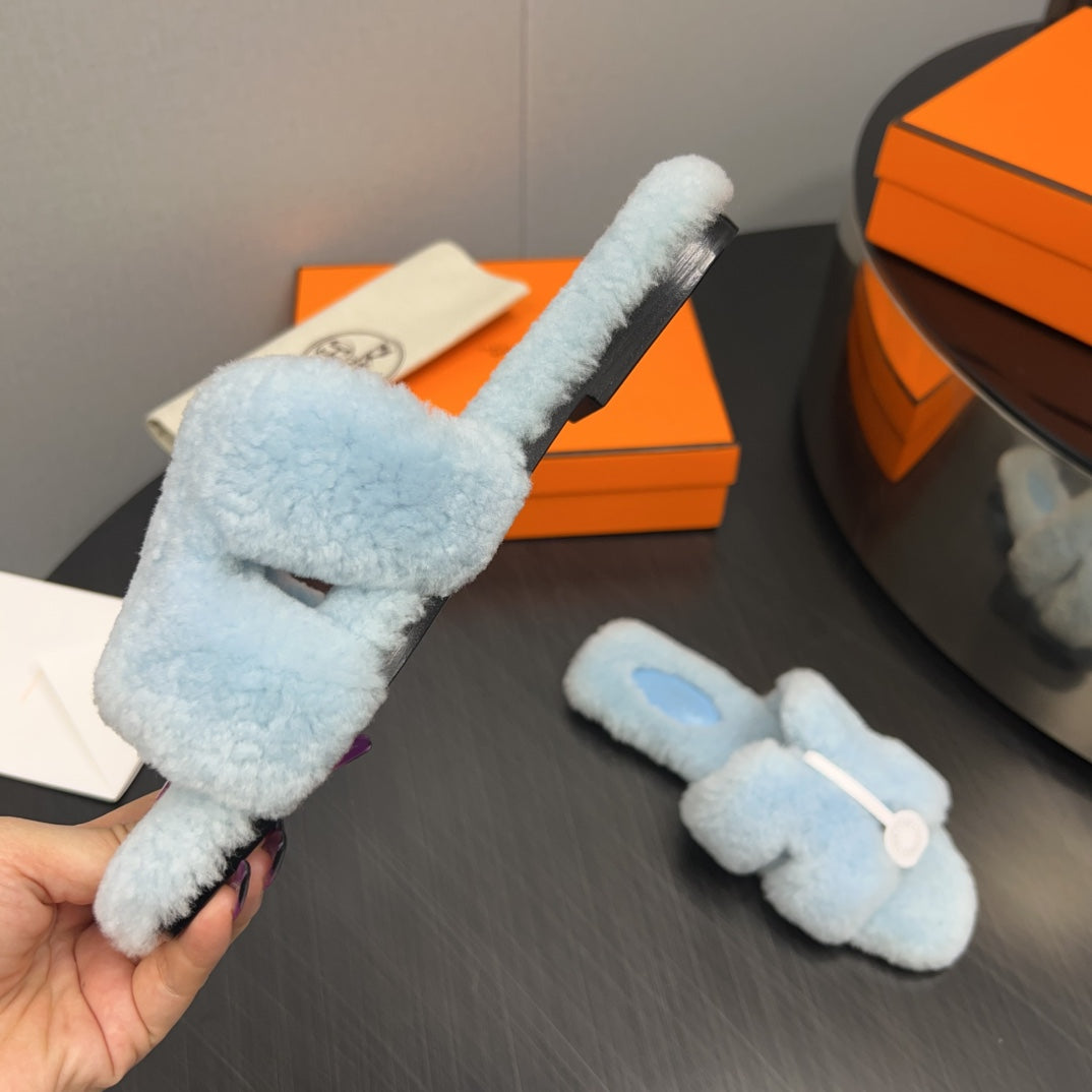 HM Chypre Sandal In Light Turquoise Lamb Wool 984178