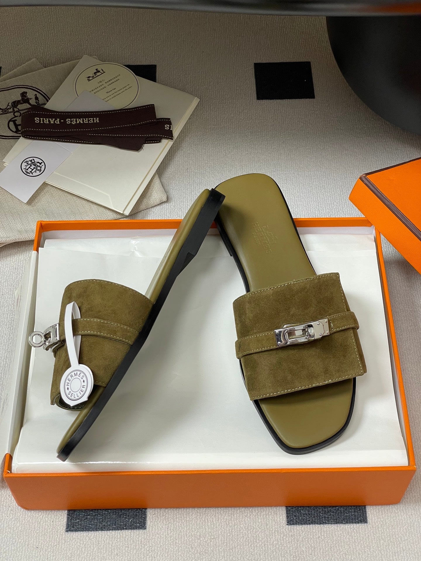 Hermes Oran Sandal Beige Sheep Fur 406993