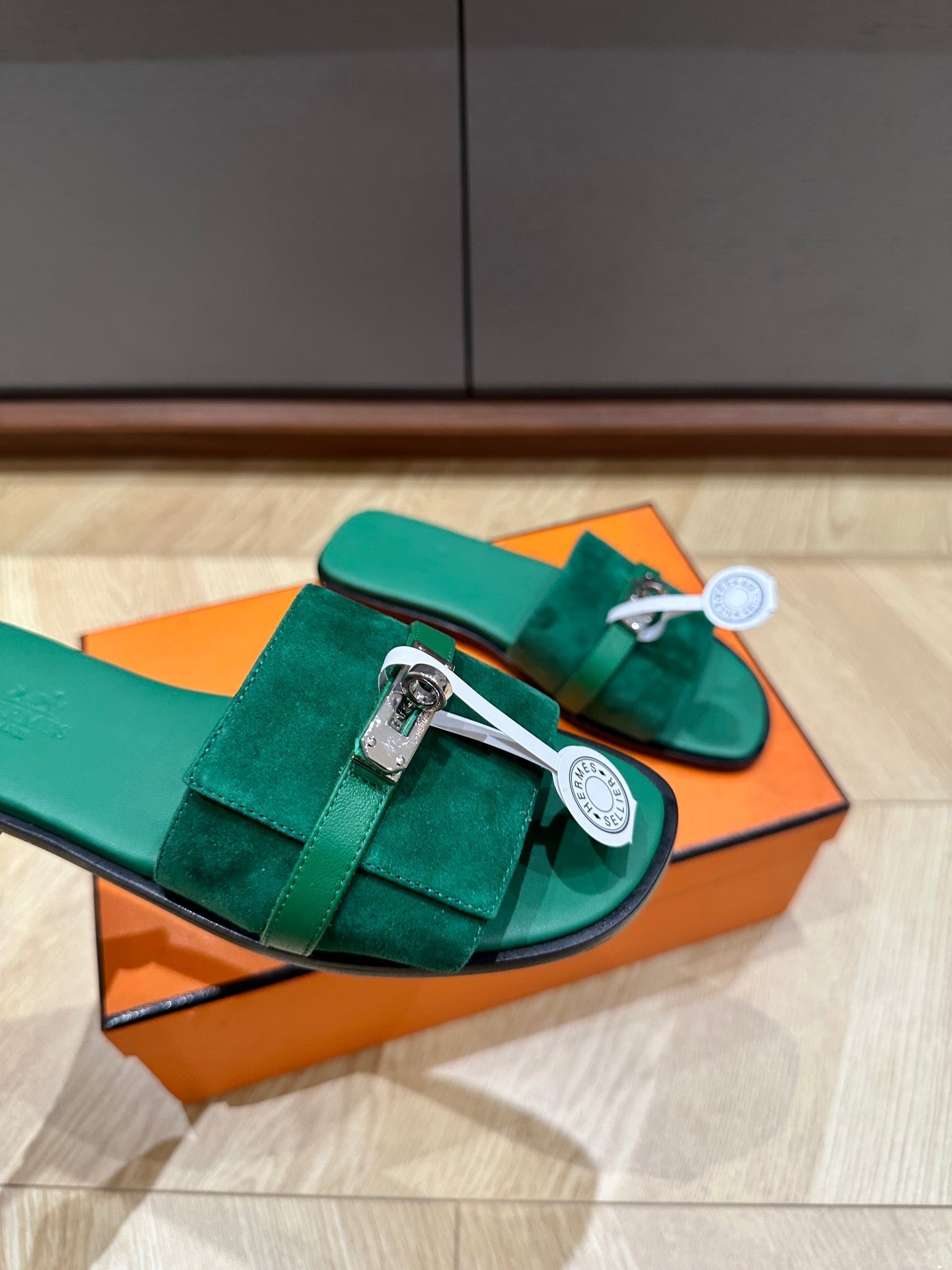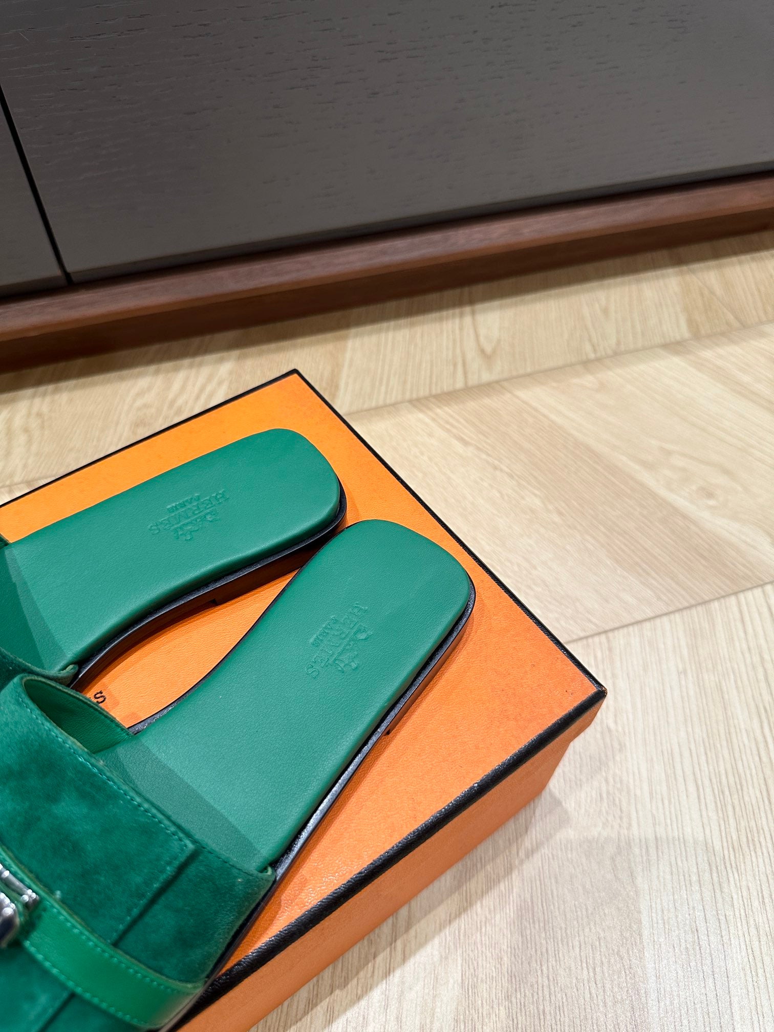 CHYPRE SANDAL GREEN MIX CREAM CALFSKIN