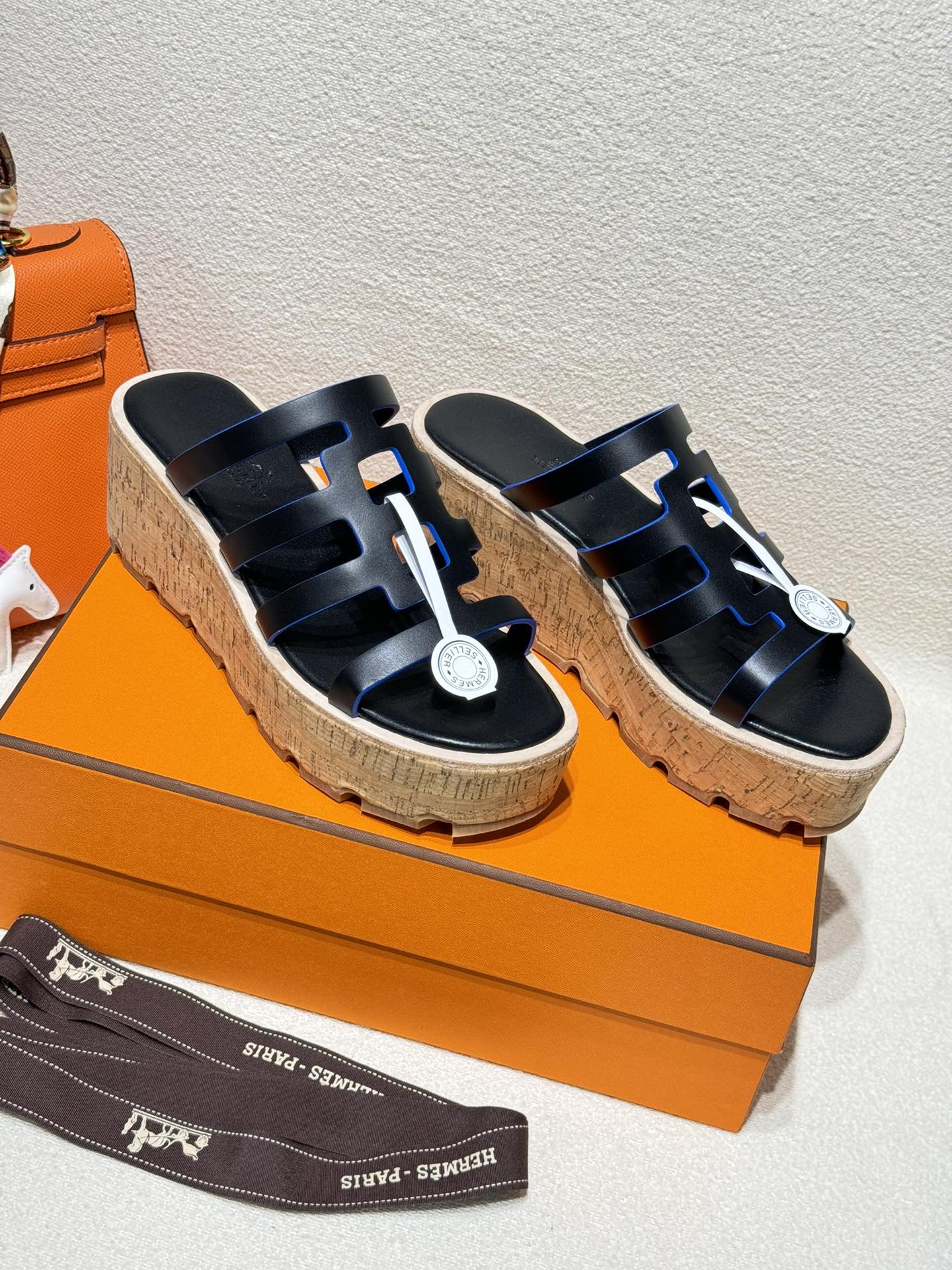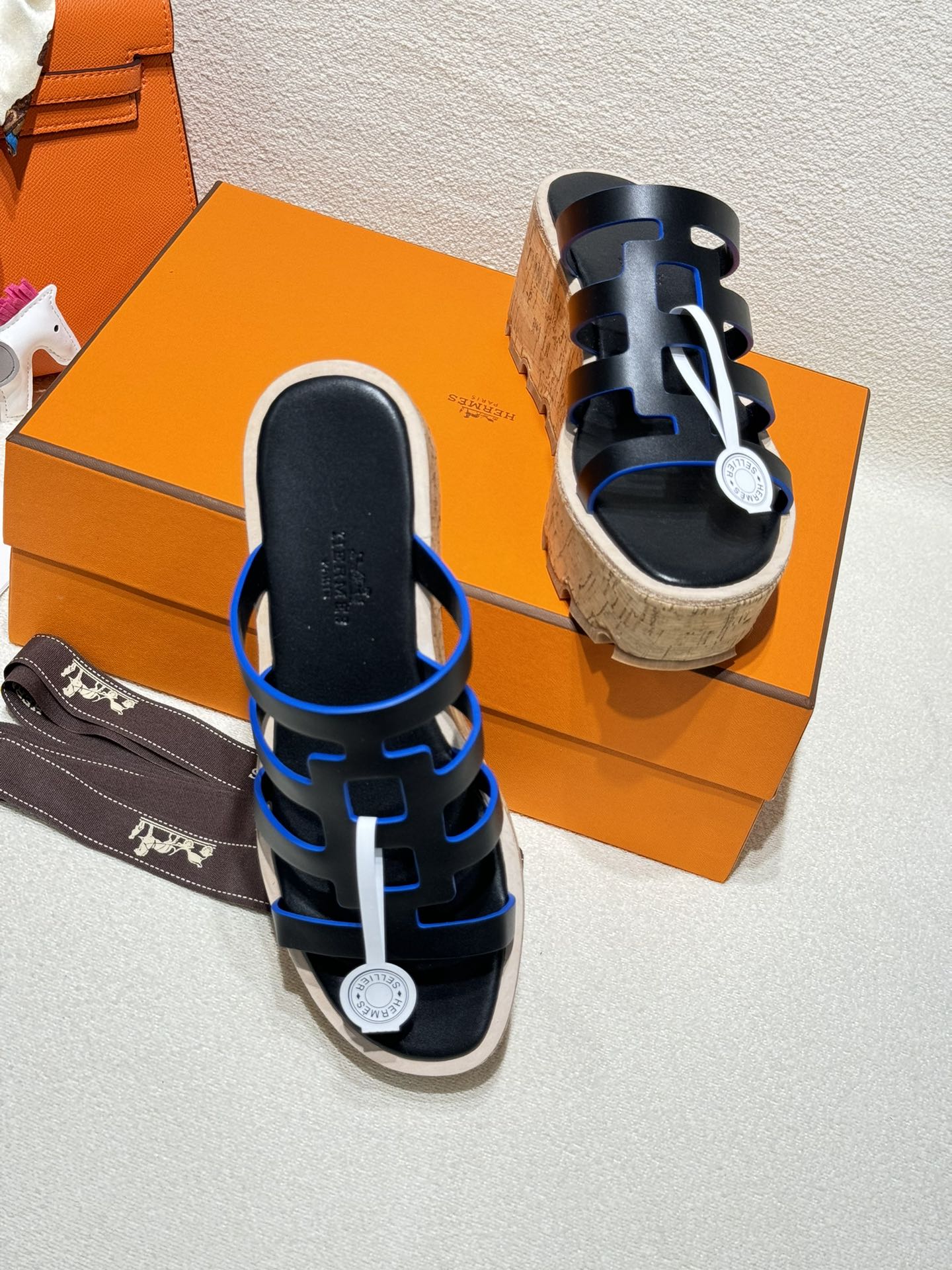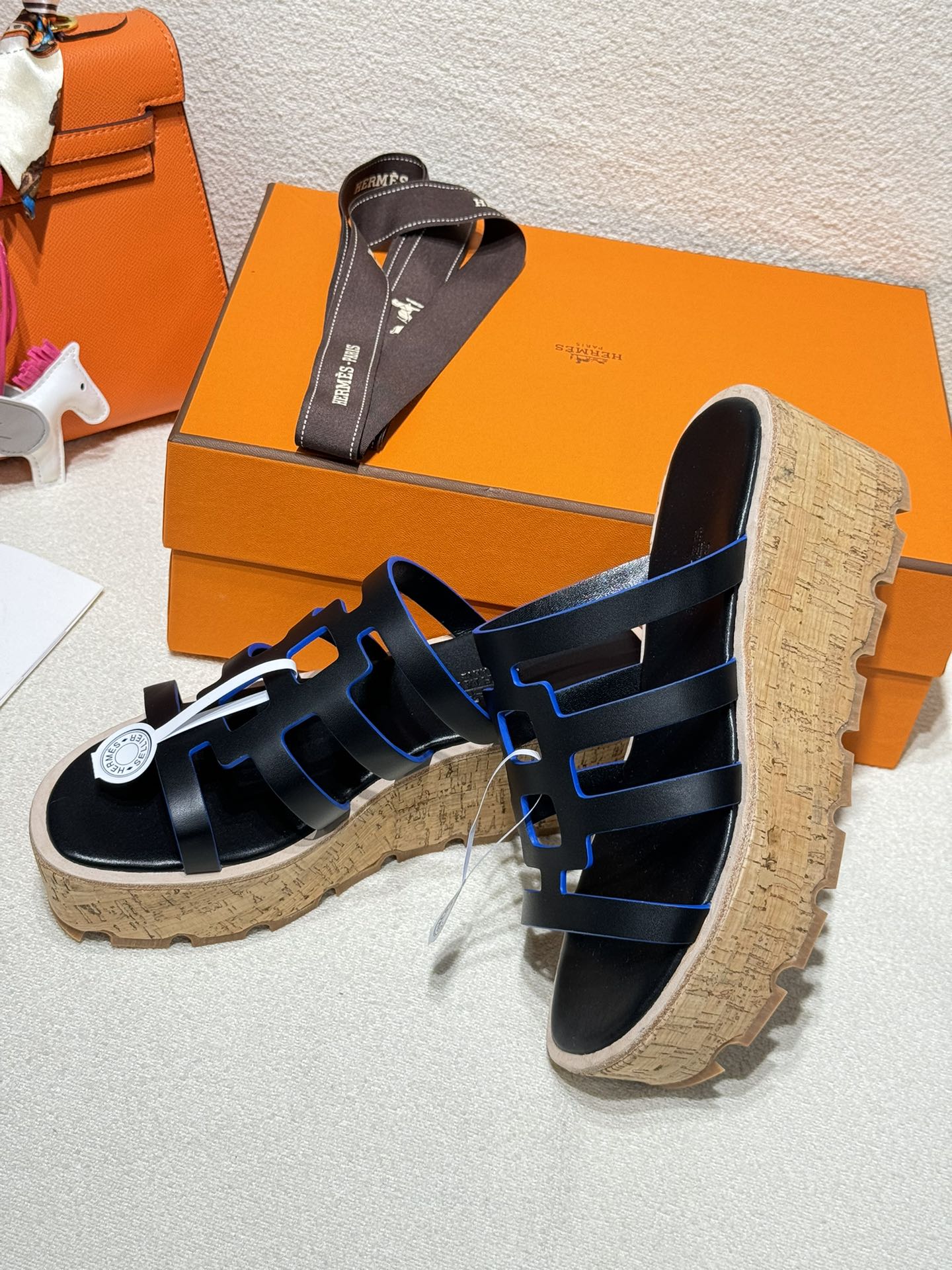 CHYPRE SANDAL BLACK MIX IMPERIAL BLUE CALFSKIN